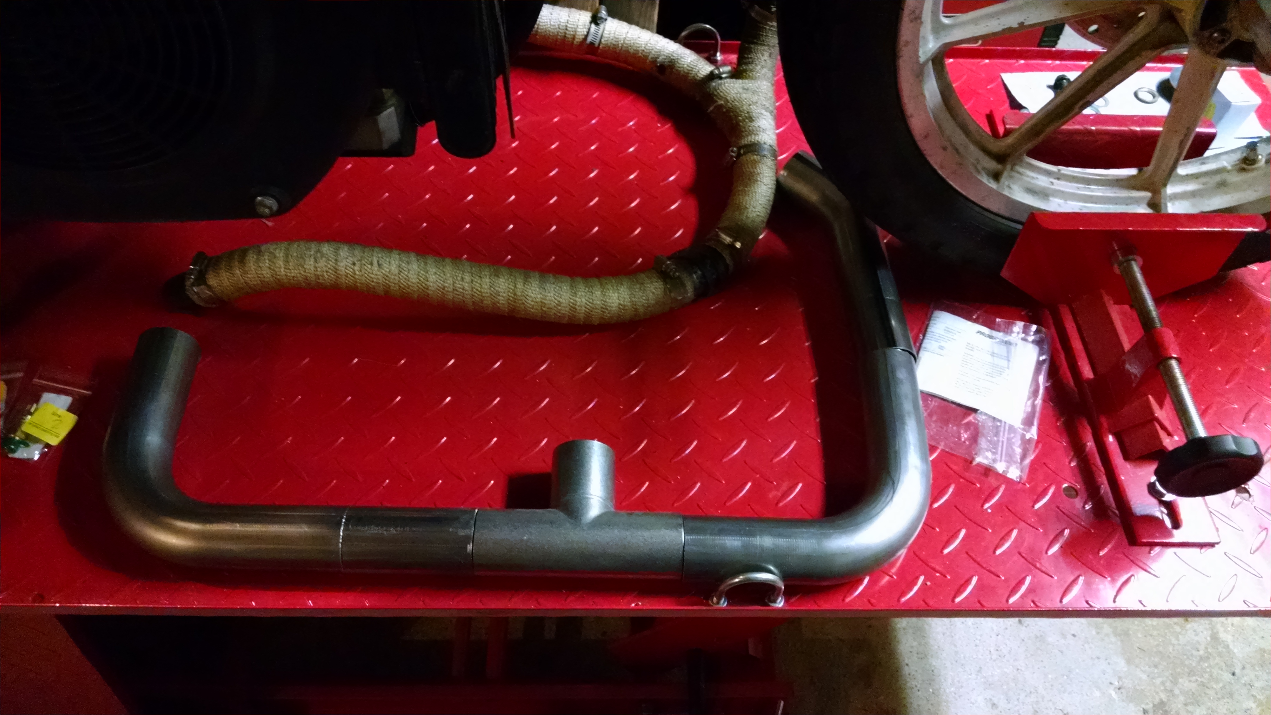 A week at my local powder-coating shop, and the exhaust now has a high-temp ceramic finish