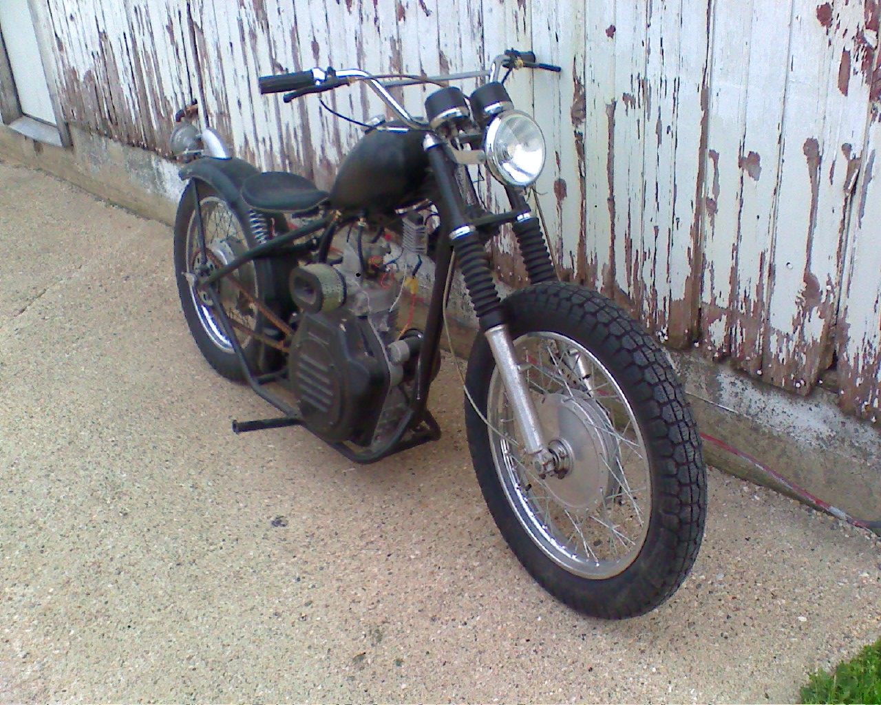Hello all. I'm new to this diesel thing. I was born a gearhead, more so, a drag racer. I just did some horse trading with my pops for a bobber that he got to the riding stage, then moved on. My rig started life as a 1970 Honda CL450 street bike. I think dad paid almost nothing for it, and it had a current street title! The wheel assemblies were used, as well as the forks and front frame section. My father built his own hardtail rear frame section, and remounted the rear fender. I really dig it, but now I get to make it work correctly.