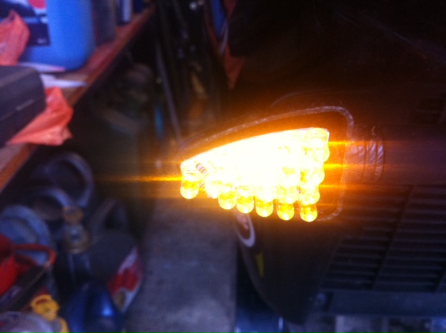 I have made ( with leaded solder wire ) the following small electronic indicator relay to mount inside the handlebar to control the indicators at the ends of the handlebar: