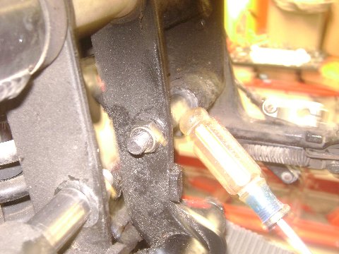 Lower Rear? mounts on frame to match mounts on OEM engine. Screwdriver points to them. Plan to use these similar to OEM arrangement