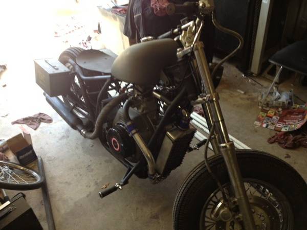 Custom 1987 Suzuki gs750 frame with 418cc Yanmar Intercooled Turbo Diesel Engine. Automatic CVT Transmission. Top speed of 70mph while maintaining 140 to 150 mpg. It is a mechanical direct injection diesel so it can run on bio diesel, vegetable oil, mineral oil, used motor oil, etc. it will pretty much run off of any oil based fuels. Military theme with ammo cans as sattle bags. It has no electrical based components required to run, so in the worst case situation like an EMP strike, the bike would be completely unaffected. I would love to keep the bike, but my wife and I have our 3rd child on the way so we need the money for transportation that can fit all of us. I am asking $7800 negotiable. Or will consider trades for Honda Odyesse, Toyoya Sienna, or Nissan Quest. For more information please contact Sam at 678-221-6977