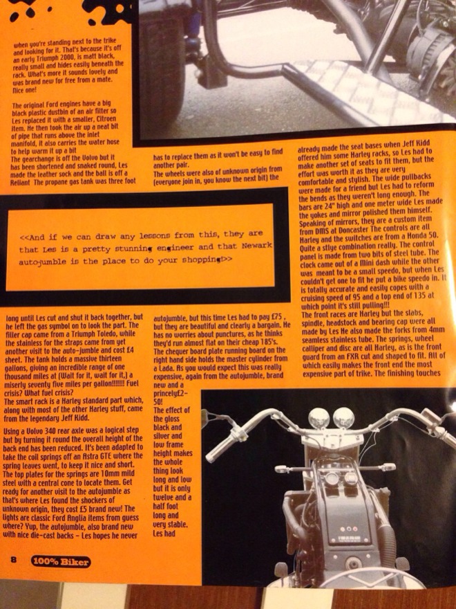 This trike was featured in 100% biker mag..