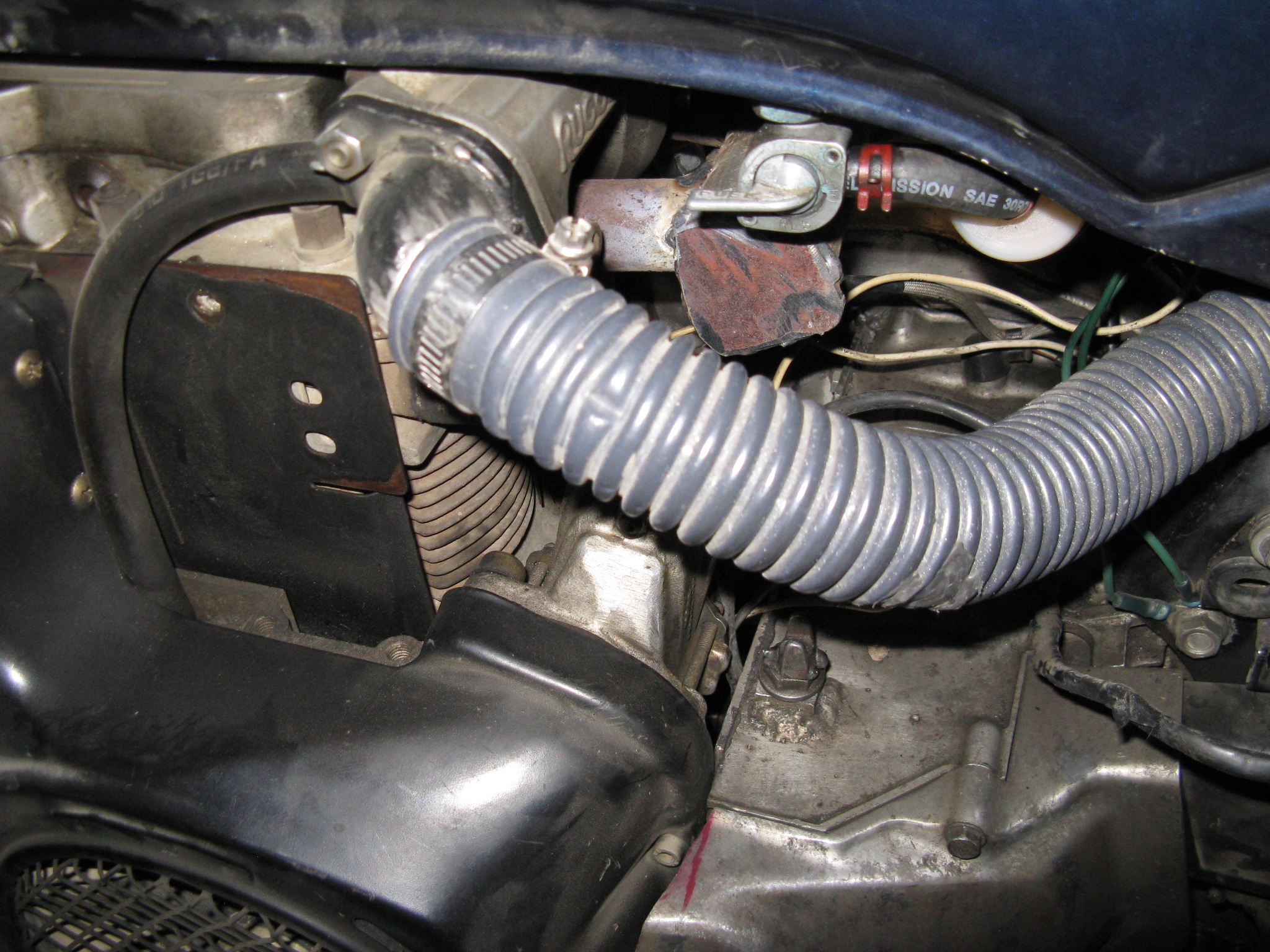 My air intake hose sucks from the original Honda airbox. I build an attachment plate for the hose out of aluminum house eve fascia.