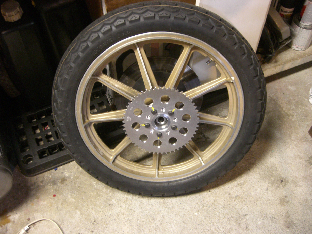 To estimate sprocket sizes, I created a spreadsheet to calculate the approximate gear ratio for the final drive, and used trial-and-error to zero in. Ultimately, I decided to go with a 54 tooth rear and a 14 tooth front as the conservative testing ratio.
