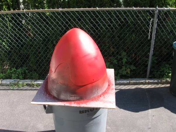 I made a large and heavy mold out of plywood, screen, and several gallons of Bondo that was then hand-sanded into the final shape. Ben was employed at a marine store at the time, and had become an expert at creating fiberglass parts, so he laid down the glass and made a strong and flexible cone. It was then cut and sanded into shape, given a thin coat of Bondo to smooth out the outer surface, and installed.