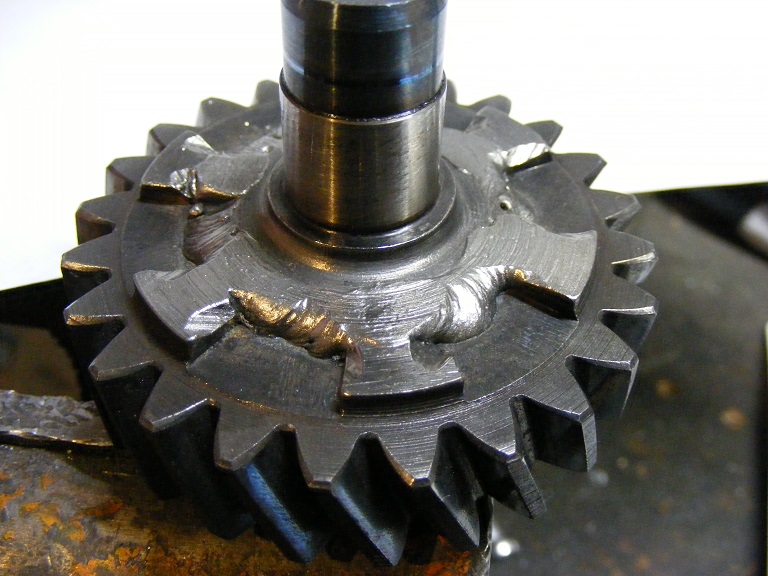 For those unfamiliar with helical gears, each meshes with a gear of opposite angle; left-hand meshes with right-hand, etc, so the only gears to pick from must be from one-shaft-over. I was surprised to find that a T-3 tranny uses different pitch gears that don't mesh with a Convert tranny gears. (Anyone want a set of T-3 gears?) This is where Moto Guzzi’s Convert tranny offers a limited, but useable, variety of options with relatively simple machining.