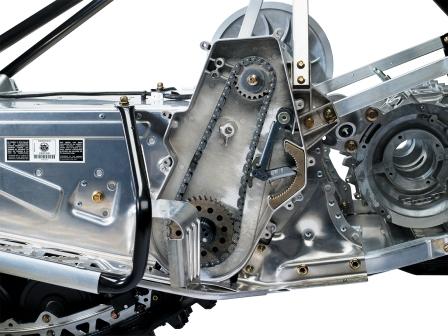 It appears the snow machines have a chain reduction to the drive belt just like a motorcycles final drive..