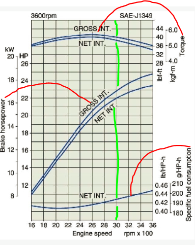 2. Diesel engine rpm is 1/2 the gas engines rpm.