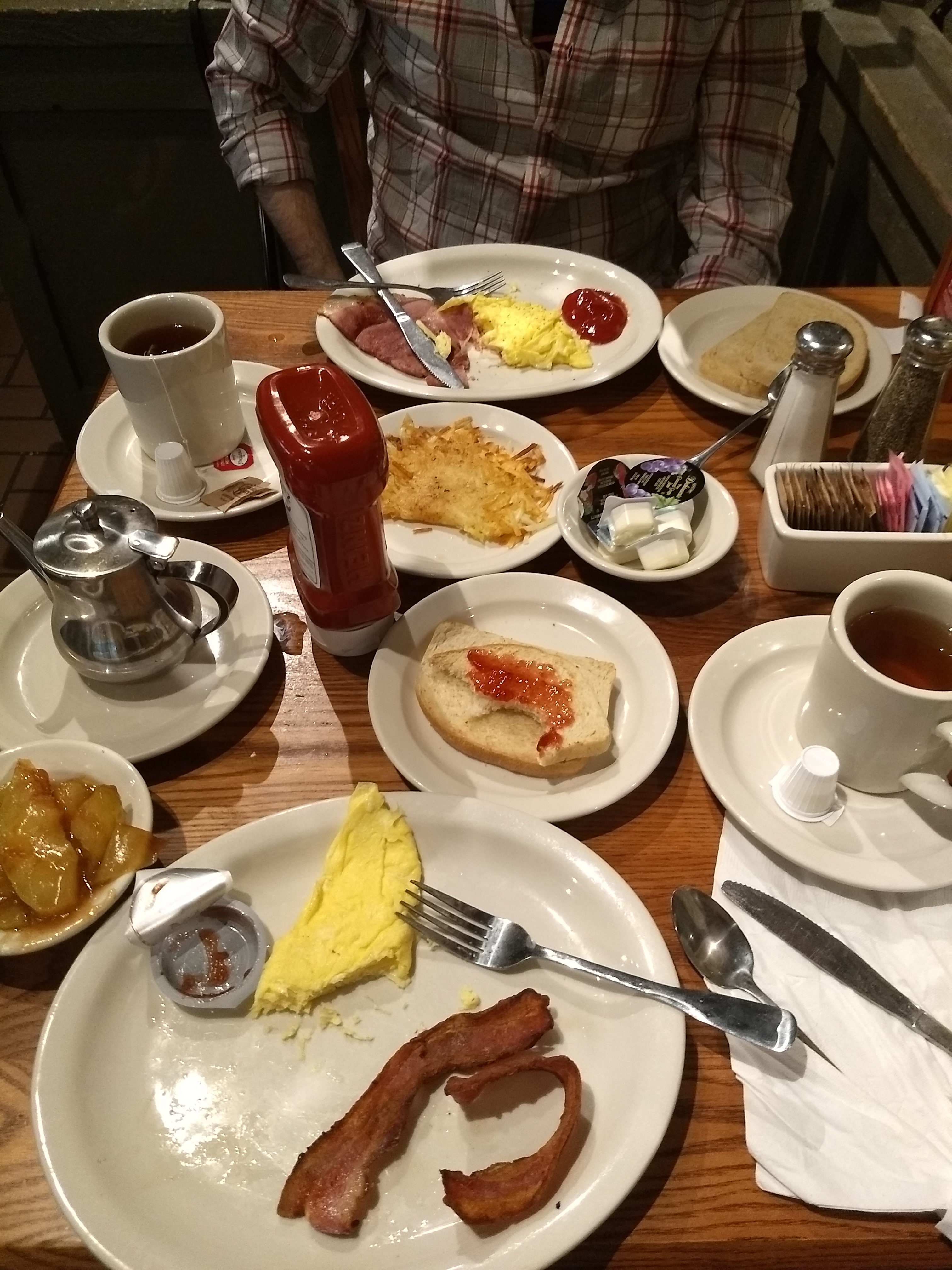 We arrived at our first destination around midnight, where some friends outside of Boston graciously let us crash in their guest room. By 7AM the next morning, we were back on the road, and digging in to breakfast at a Cracker Barrel.