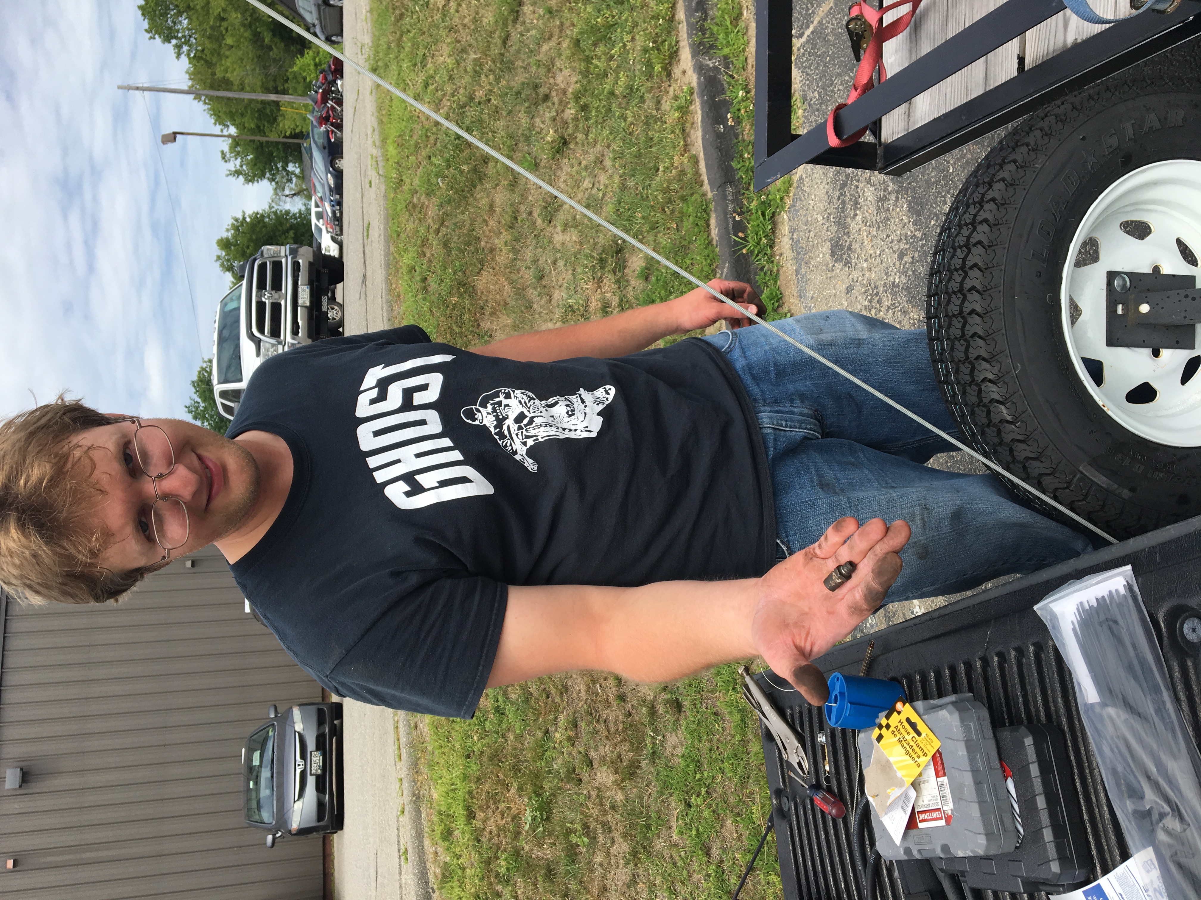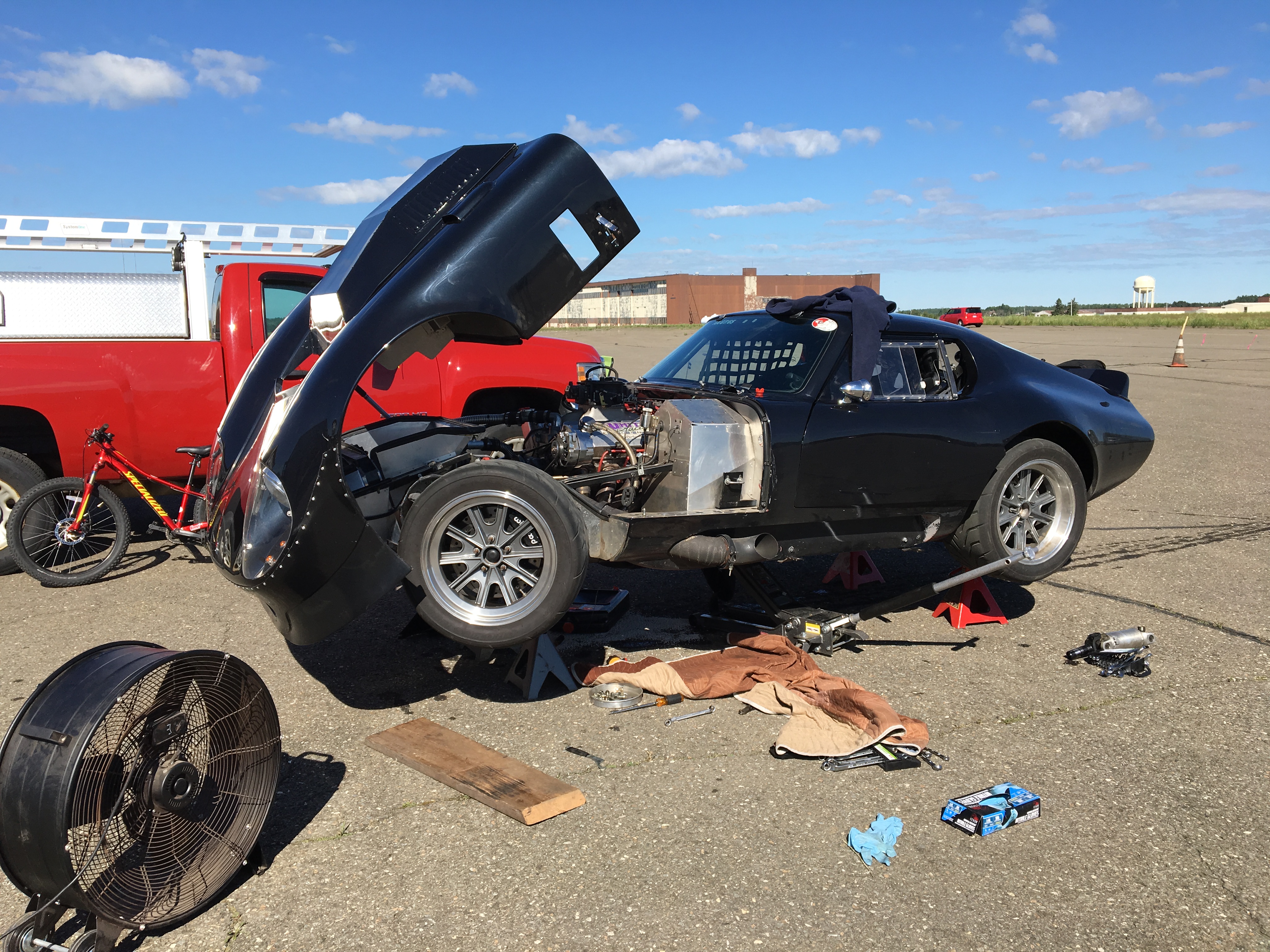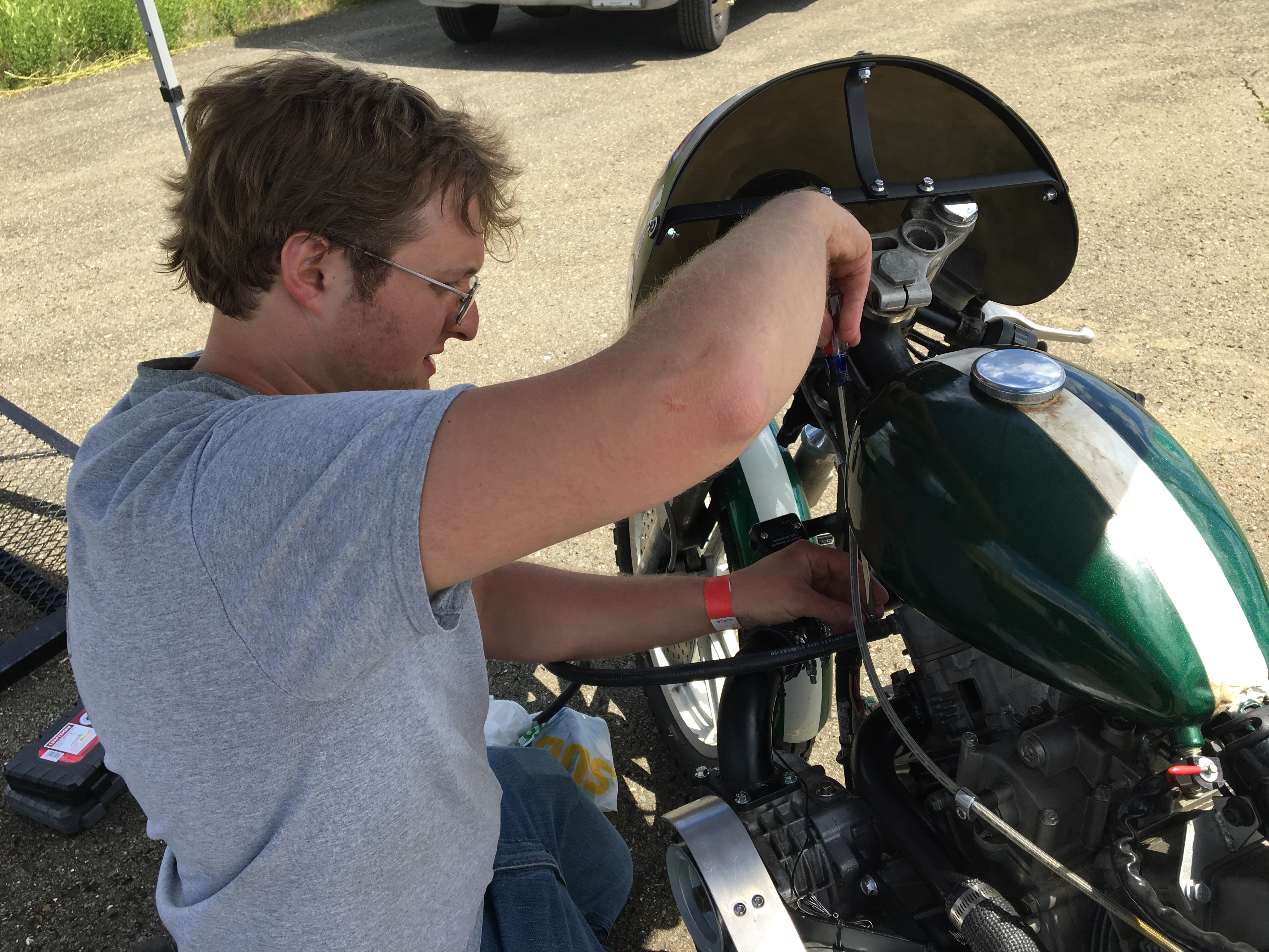 We quickly drove to an auto parts store in Caribou, and purchased 3/8in fuel line and zip ties. These supplies, combined with a used Gatorade bottle, make a halfway-decent crankcase catch-can. Tech inspection cleared the modification, and we rolled back out to the track.