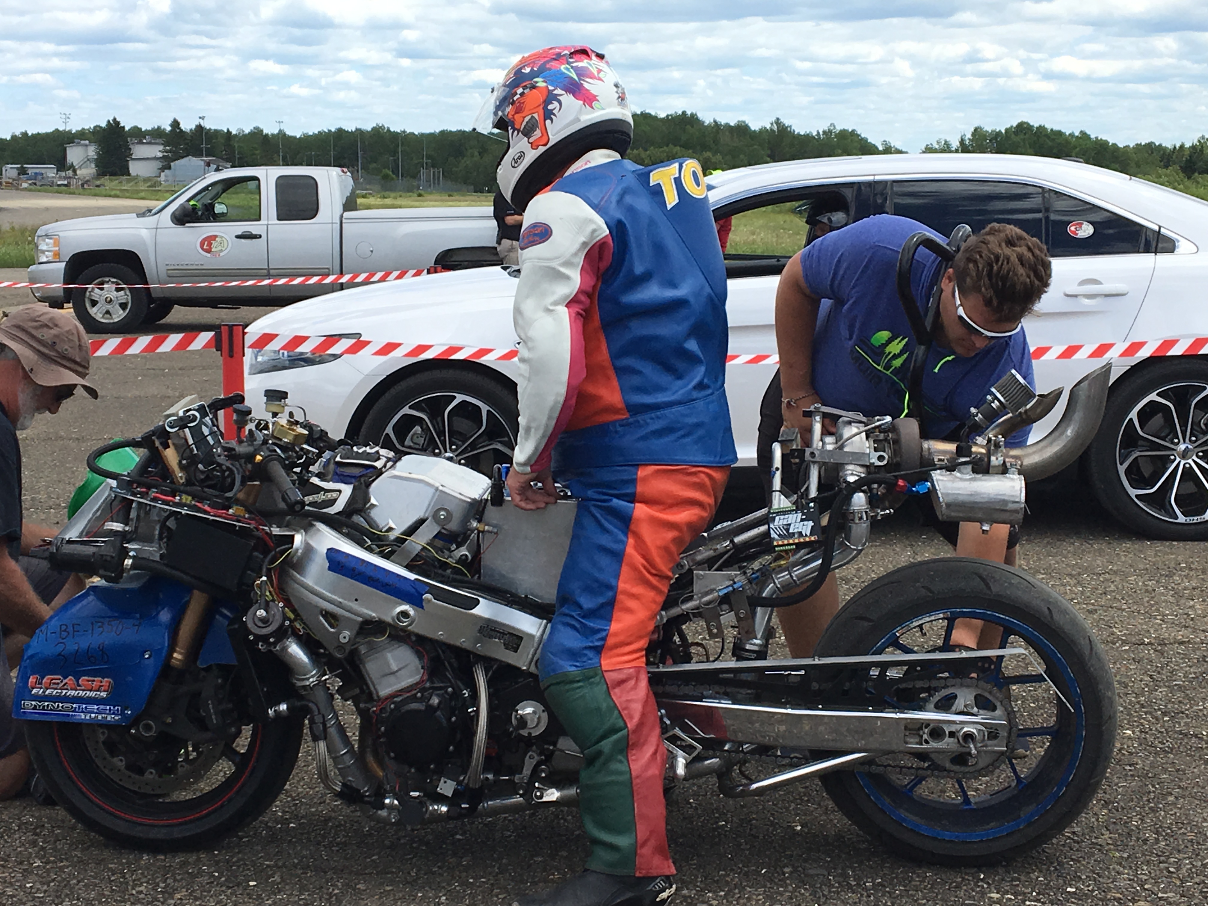 After the third run, we were confident that the bike was at maximum power, and any further runs would only risk causing engine damage. We packed everything up, loaded the truck, and watched other teams race the course before driving back to Presque Isle for dinner.