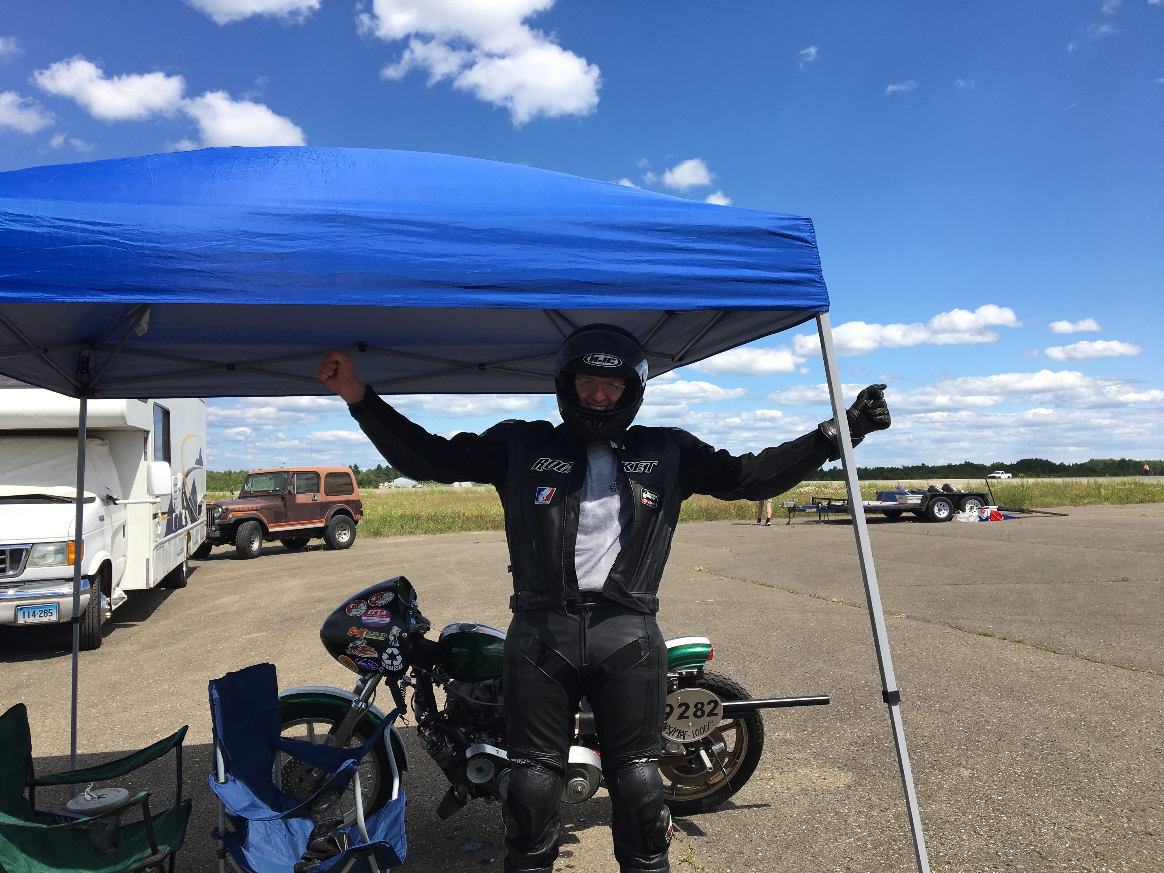 Friday dawned cool and partly cloudy, with a good tail wind and low humidity. Absolutely perfect conditions for racing, so we left the hotel early and rushed to the track. The bike breezed through tech inspection, and we attended the morning drivers meeting, set up our site, and wandered the pits admiring the other high-speed machinery on display.