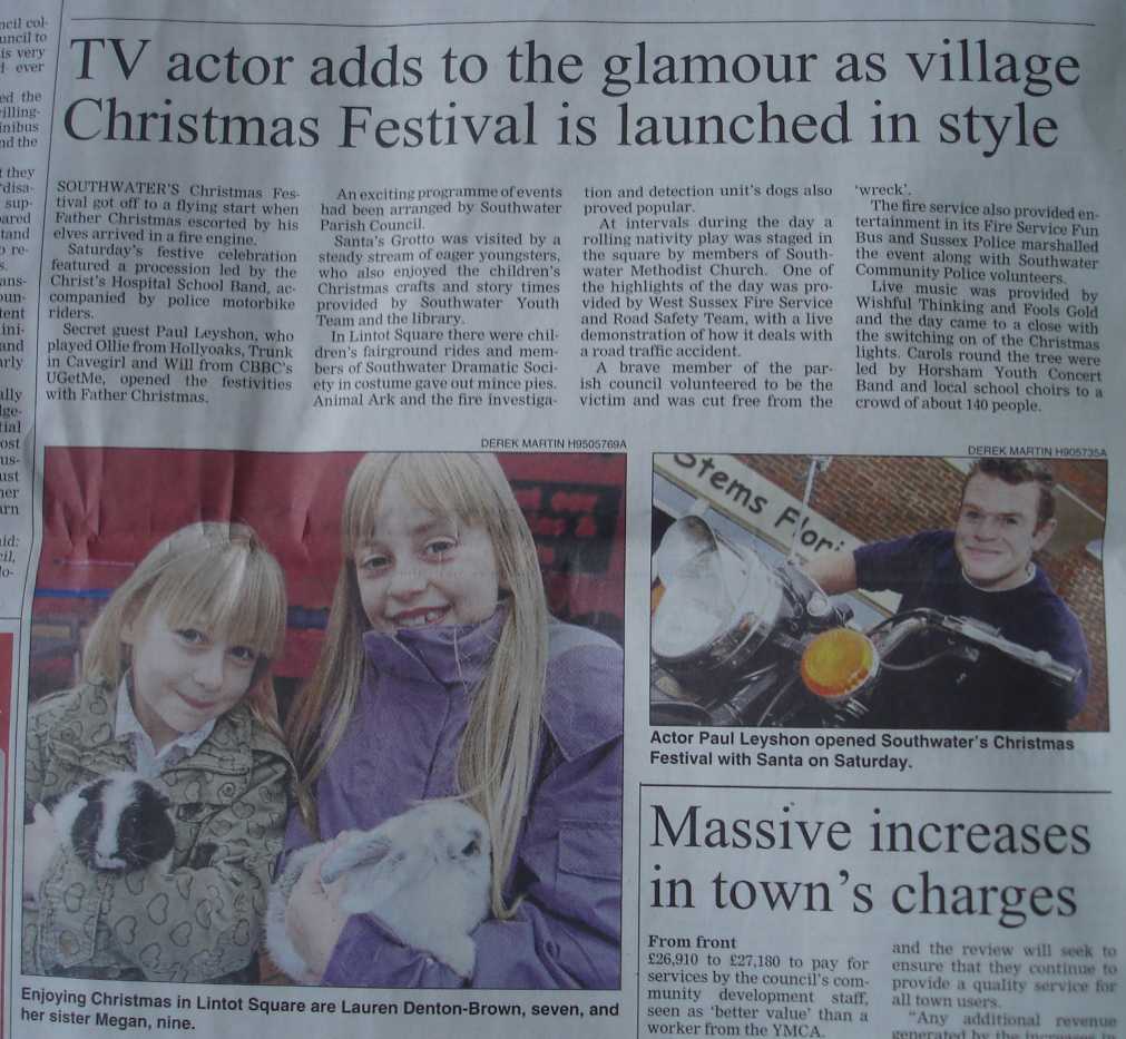 Update1: It's in Lintot sq. just jacked into a wi fi feed by the coffee shop. No rain as yet and a decent turnout for a village fete thing. Local fire brigade and force are here giving Santa a hand