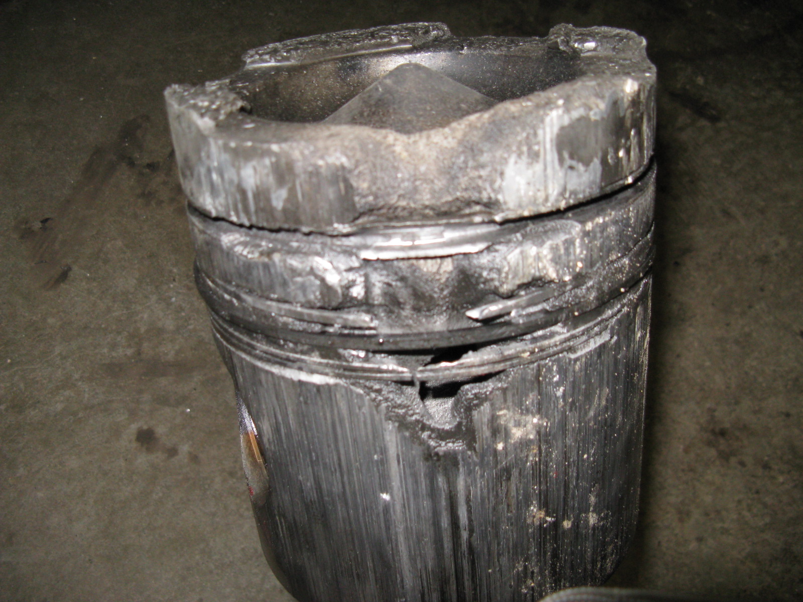 Bad injectors wreck things. Here is a picture of what a bad injector did to the piston of my Cummins NHC 250. I have no idea how long it took for this to happen as I just bought the old truck, but there is damage to the adjacent piston from piston ring material that had blown back into the intake manifold and gotten sucked into the other cylinder. Fun fun:-)