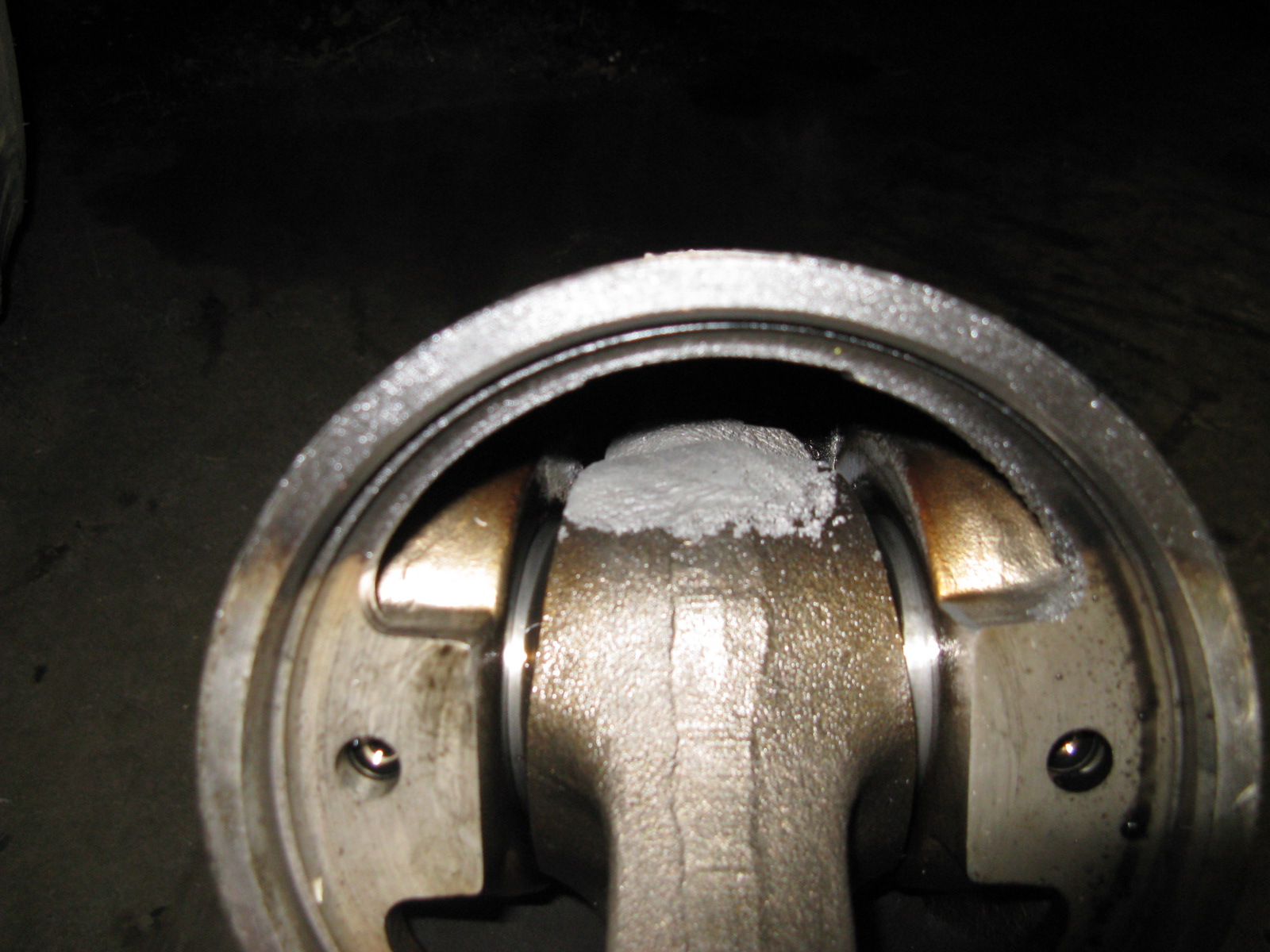 That's melted aluminum from the piston on the small end of the connecting rod. There was more deposited on the cylinder wall.