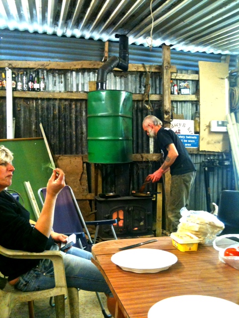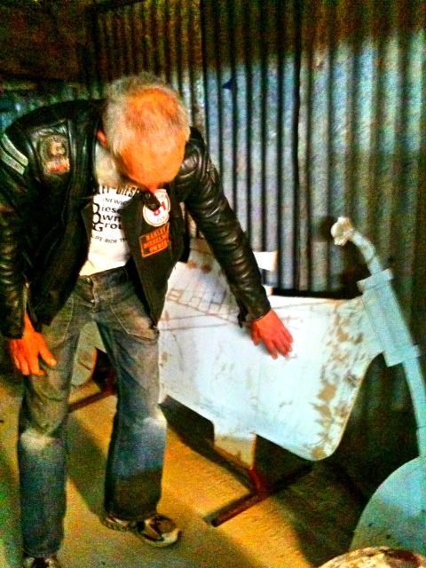 I'll start this thread as Whisker's has no internet presently. Just a few shots of his latest build. To be honest we were more busy clearing the workshop and eating breakfast than working on the bike. But that will come together I'm told in it's most basic form ready for the Bulldog Bash