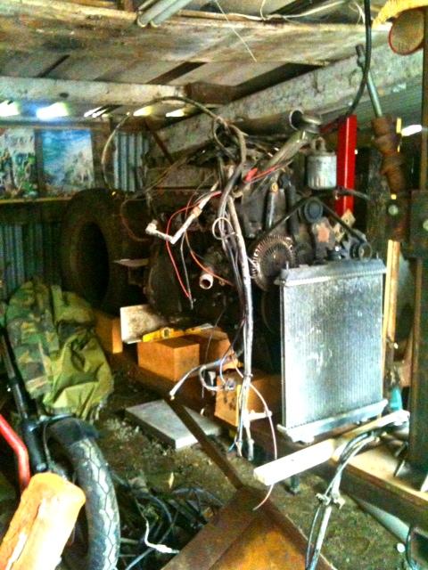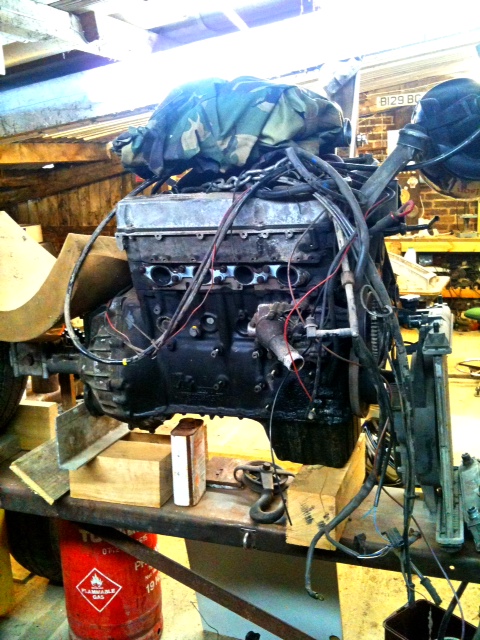 Another update. The workshop floor is finished and work has started on the bike now. The wheels you see are only for show - bike wheels will be used to finish it. Alternator has been moved and various bits moved or removed such as power steering pump etc. Also wooden dowls made to help align bevel box before the real thing was made.