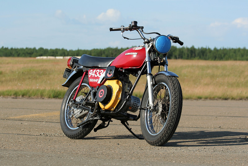 The bike after I upgraded the electricals with a dead man's switch (the lanyard on the left handlebar) and a proper exhaust system to "direct exhaust away from the racing surface". I used unbaffled straight pipes, and definetely noticed a major power increase.