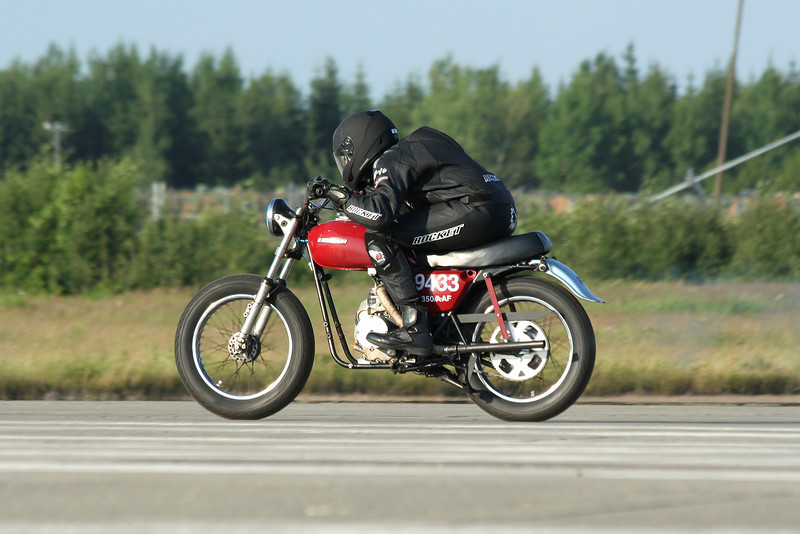After a disappointing first pass (42 mph) we decided to take the axe to everything not required by the rules. goodbye fender, brakes, taillight, and airbox. All this paid off in the next run, when the bike hit 50.09 mph