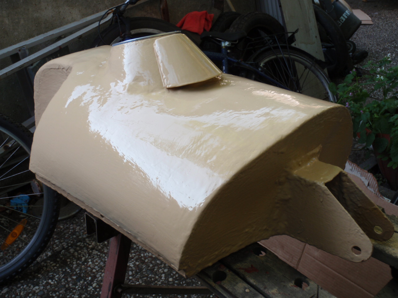 I copied the mudguard in polyester, peace a cake. Before I put the polyester on the mudguard I waxed it in.