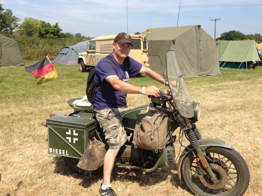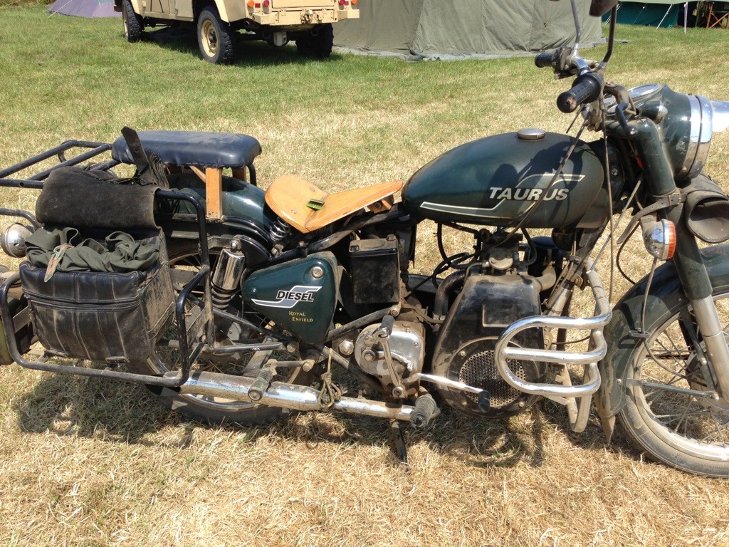 I went in search of the Diesel KLR at the UK's War & Peace Revival Show but just missed it. But I did see Angelous who I last saw in Hamm and we rode out on his bikes. He rode his Enfield & I his Lombardini.