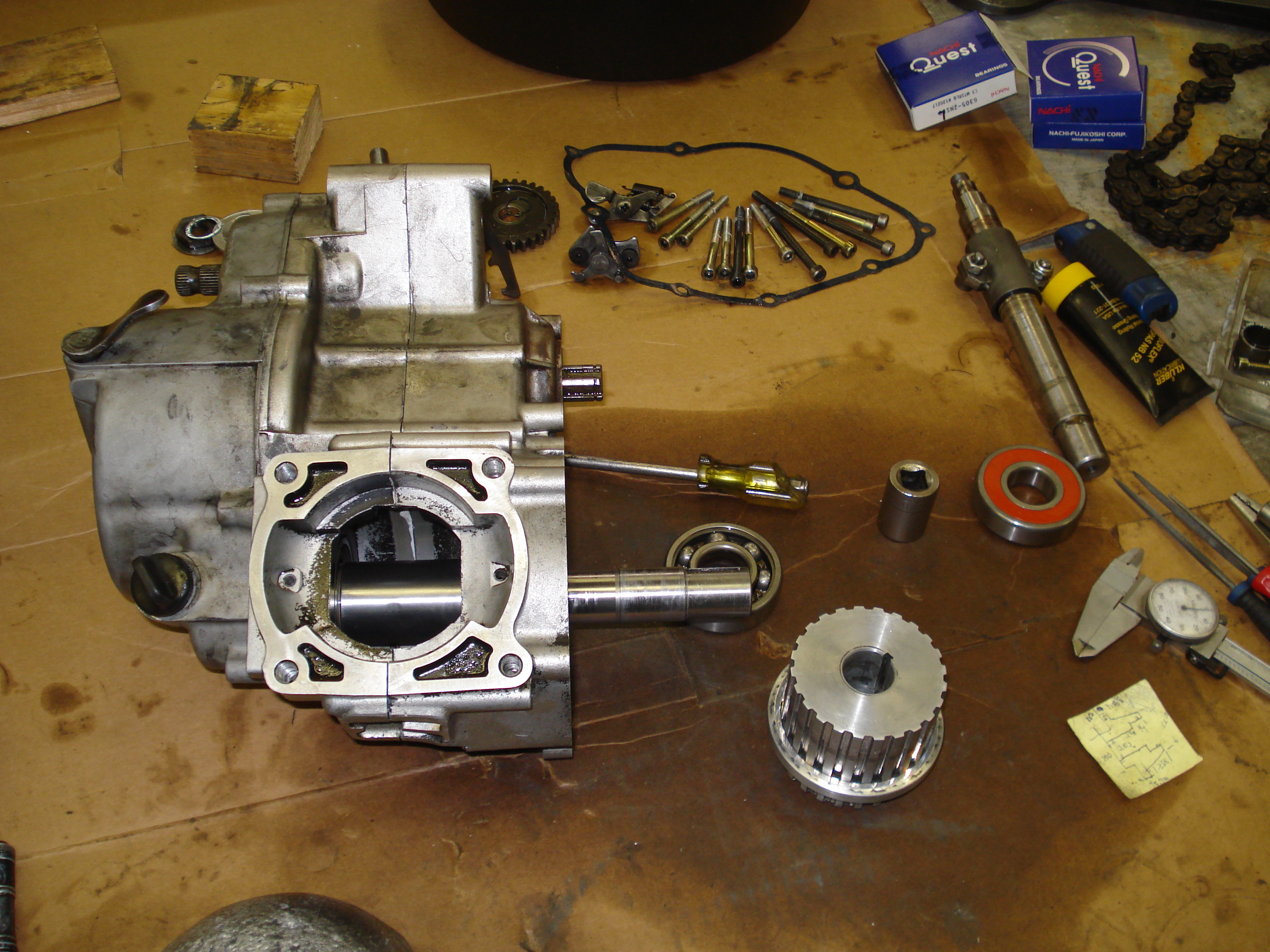 1982 kawasaki kdx 175 engine. crank removed,strait shaft instead.