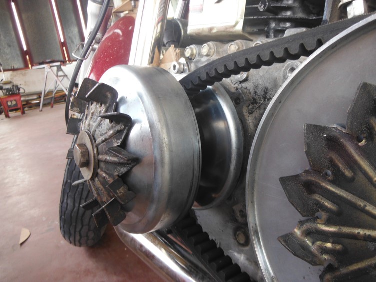 I notised that the pulleys get real hot. And I read that snowmobiles have cooling for the CVT. To protect my foot I made a cover for my CVT. It is good for my foot but it keeps the air of the CVT. So I added a blower, but the Pulleys are still very hot.