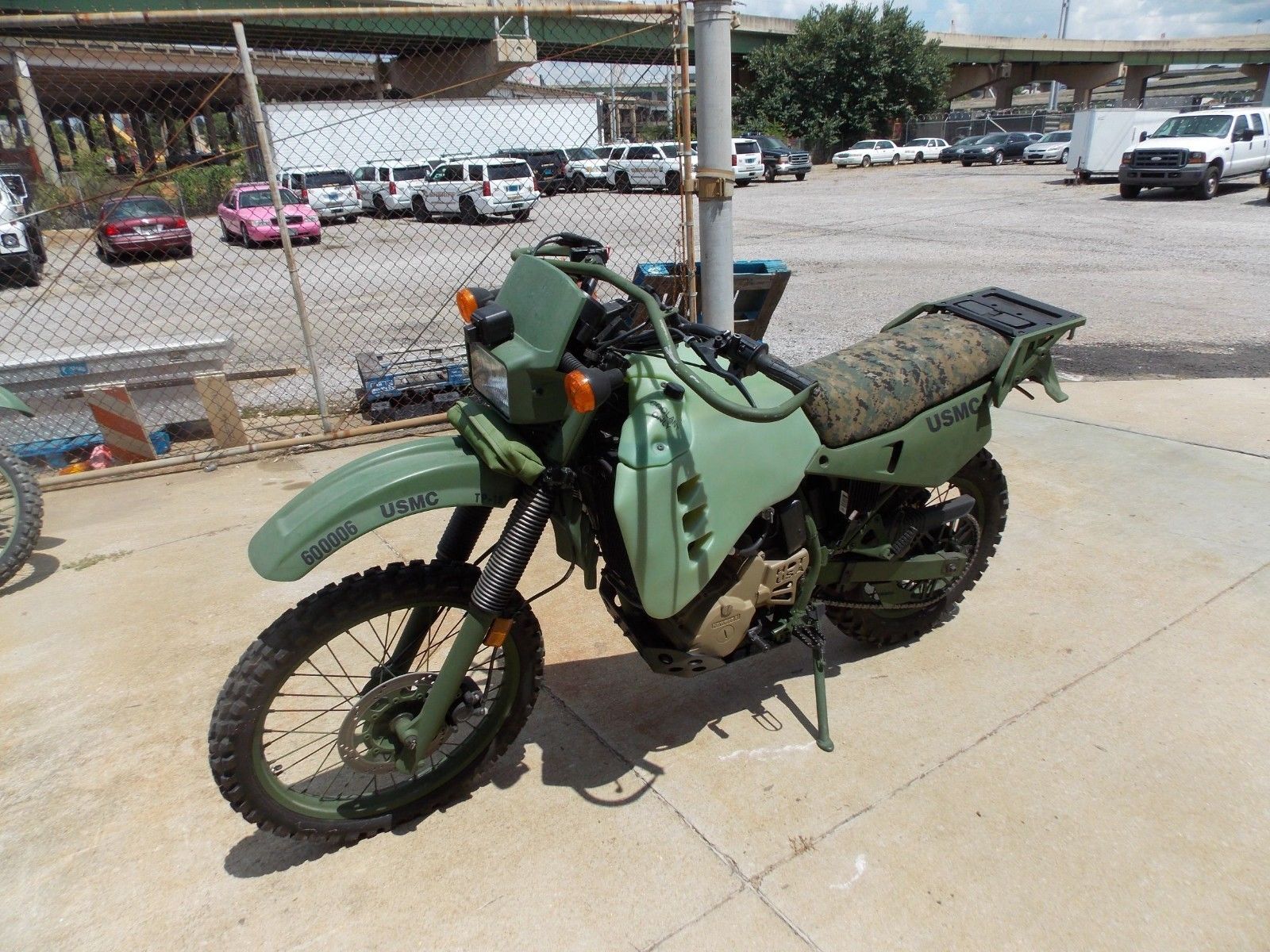 This is the Kawasaki KLR 650 Platform that was transformed by Hayes Diversified for Military Standards including ENGINE runs off the following multi-fuels: Diesel, kerosene, JP4, JP5, JP8 (Not Gasoline). These 2 were stored and never used by our personnel and we have since converted to other off road vehicles. $200 Deposit via paypal due within 48 hours of winning bid. Mileage of 66 is correct. We have CLEAR Title.