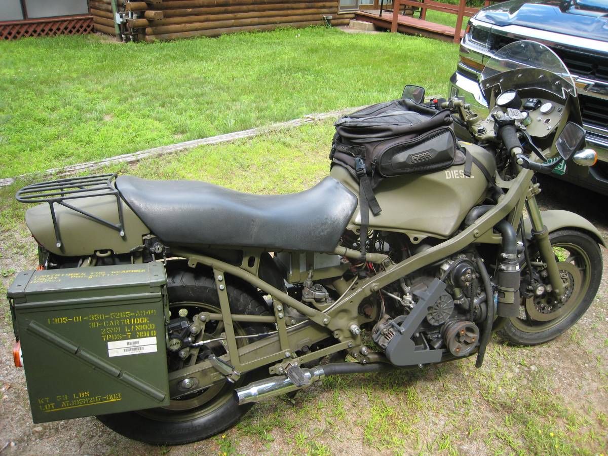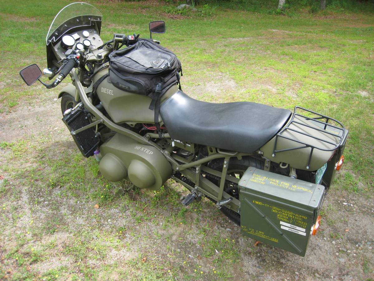 D1105t Kubota turbo diesel engine, 1985 fj100 Yamaha chassis, cvt trans like a snowmobile(automatic). About 85 mph top speed, 75 mpg, 5 1/2 gallon tank so it can easily do 350 miles between fill-ups. I've ridden it about 3500 trouble free miles since I converted it. About 100 miles on new tires, 500 on oil, filers, batt, and valve adjust. Shouldn't need anything for a while. All luggage in pictures comes with it. Clean Mass title in my name. Terms: CASH ONLY face to face. I'm about 10 miles from I-91 in central VT(2 1/2 hours from Boston).