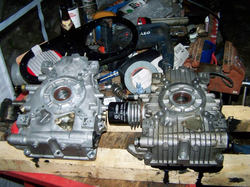 This Picture shows two Punsun Crankcase Covers. The right one was the one that was delivered with my engine. It has a punchmarked main bearing so I ordered a new Crankcase Cover from an old 812cc engine with a correctly mounted bearing. As you can see the left Cover comes without threads and a stripped centring ring.