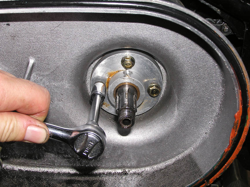 You can also see the 'slipper' type primary chain adjuster, which is also unbolted and removed.