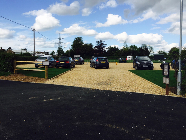 Enter the second field by driving through the new car park.