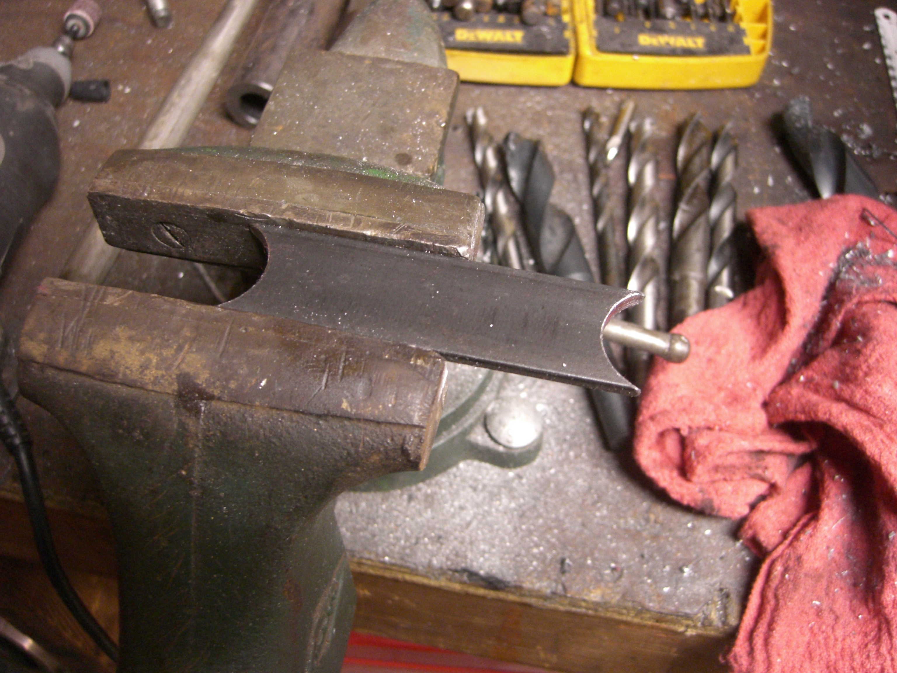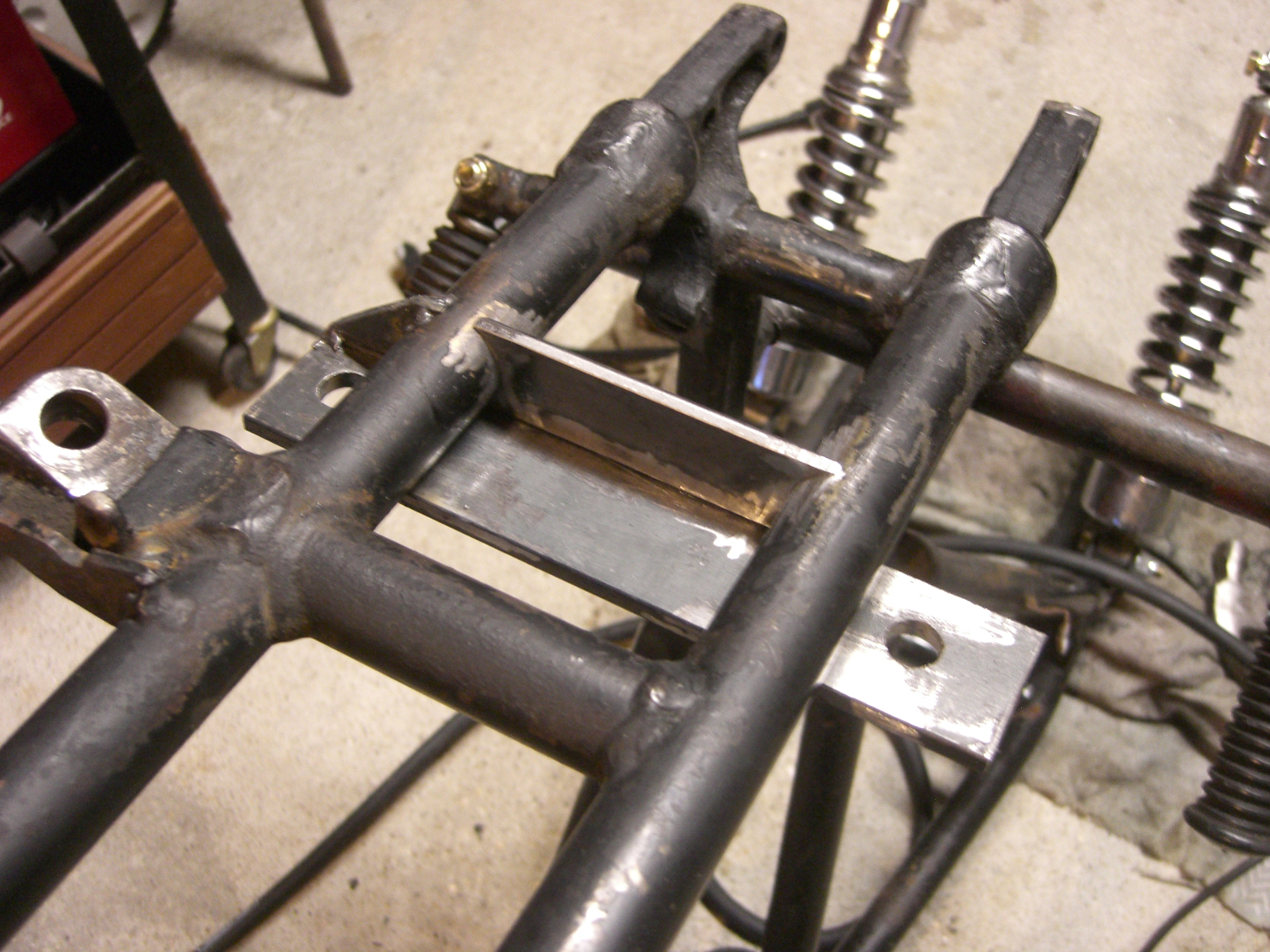 After I brought the bits home, I discovered that a small peanut tank I had purchased years before was a perfect fit. I traded the stock tank back to the previous owner in exchange for the correct rear fender struts.