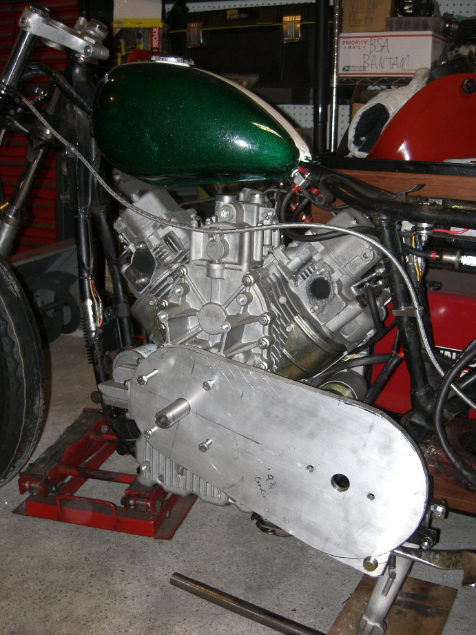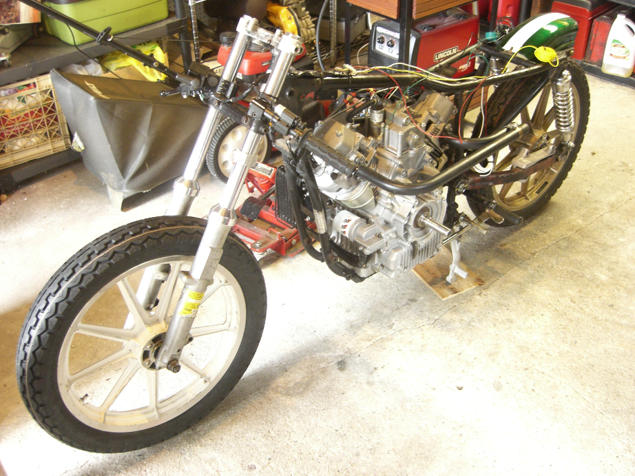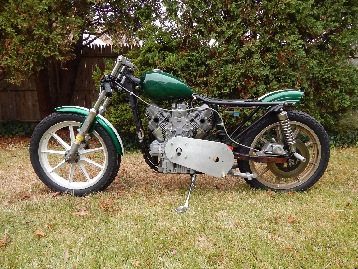 I've started collecting the major parts for the next land speed racer project. I have no intention of making this one road legal, it will be specifically set up for speed. No front brakes, no lights, nothing that doesn't need to be there. The donor bike is the carcass of a 1979 Harley Davidson Sportster that I picked up on Craigslist. The bike had been stripped for a chopper project, so I picked up the forks, frame, swingarm, and gas tank. I am going with a Harley because of the enormous space for an engine in the frame. It will give me plenty of option for engine, transmission, and turbo/supercharger combinations.