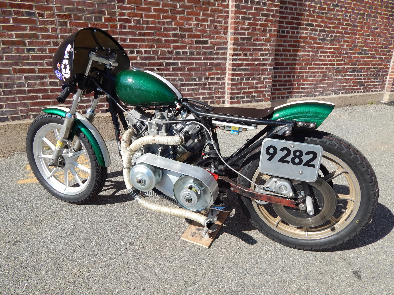 The donor was a heavily thrashed Suzuki dirtbike, and it was hilariously badly assembled by a high-school-age your truly, with zero build quality or safety features. Ultimately, the gas tank, foot pegs, nose cone, and some wiring were put into storage, and eventually recycled into the Biodiesel Sportster.