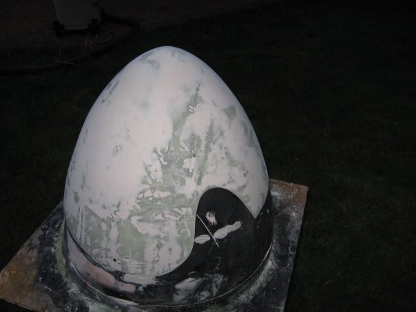 This fiberglass nose cone was homemade by myself and my friend Ben for my first land speed attempt. This early bike was not well-made, and I ultimately saved a few of the better pieces and scrapped the rest.