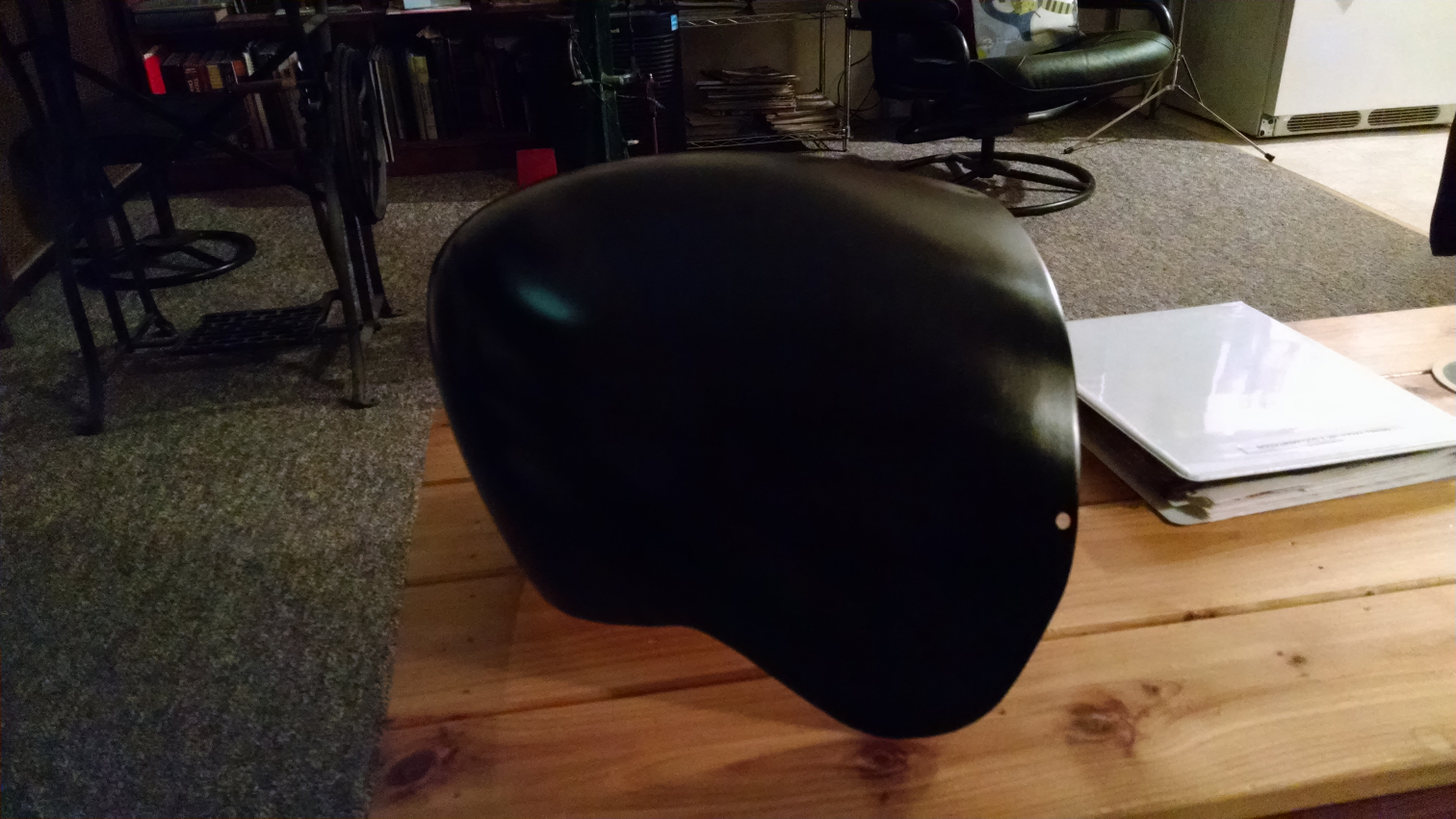 The cone hung on my wall through college and various jobs and projects, before we decided to give it a second life on the Sportster. I sanded off the old peeling red paint, trimmed it down, repainted it Satin Black, and built a new mounting bracket to bolt it to the Sportster.