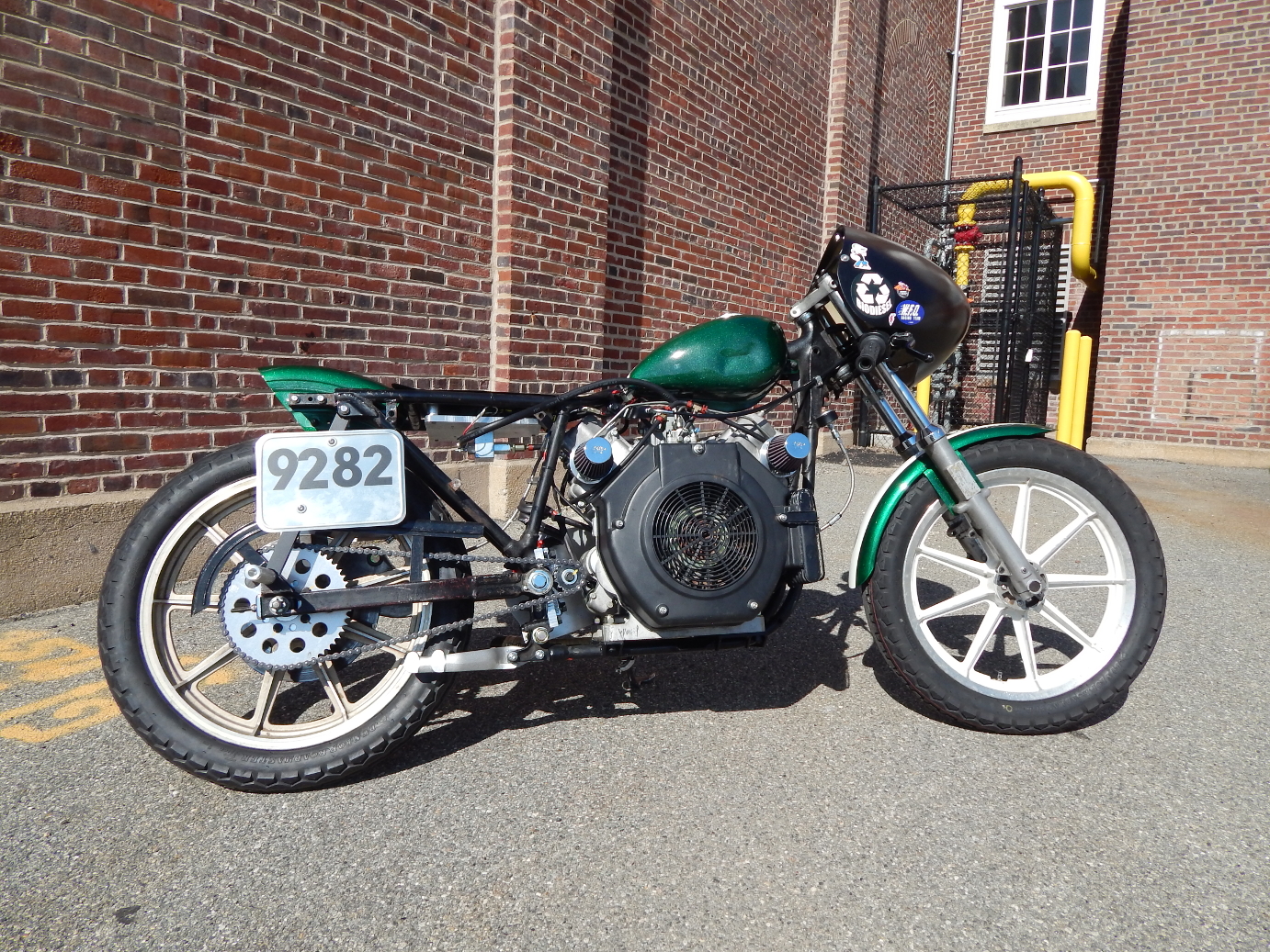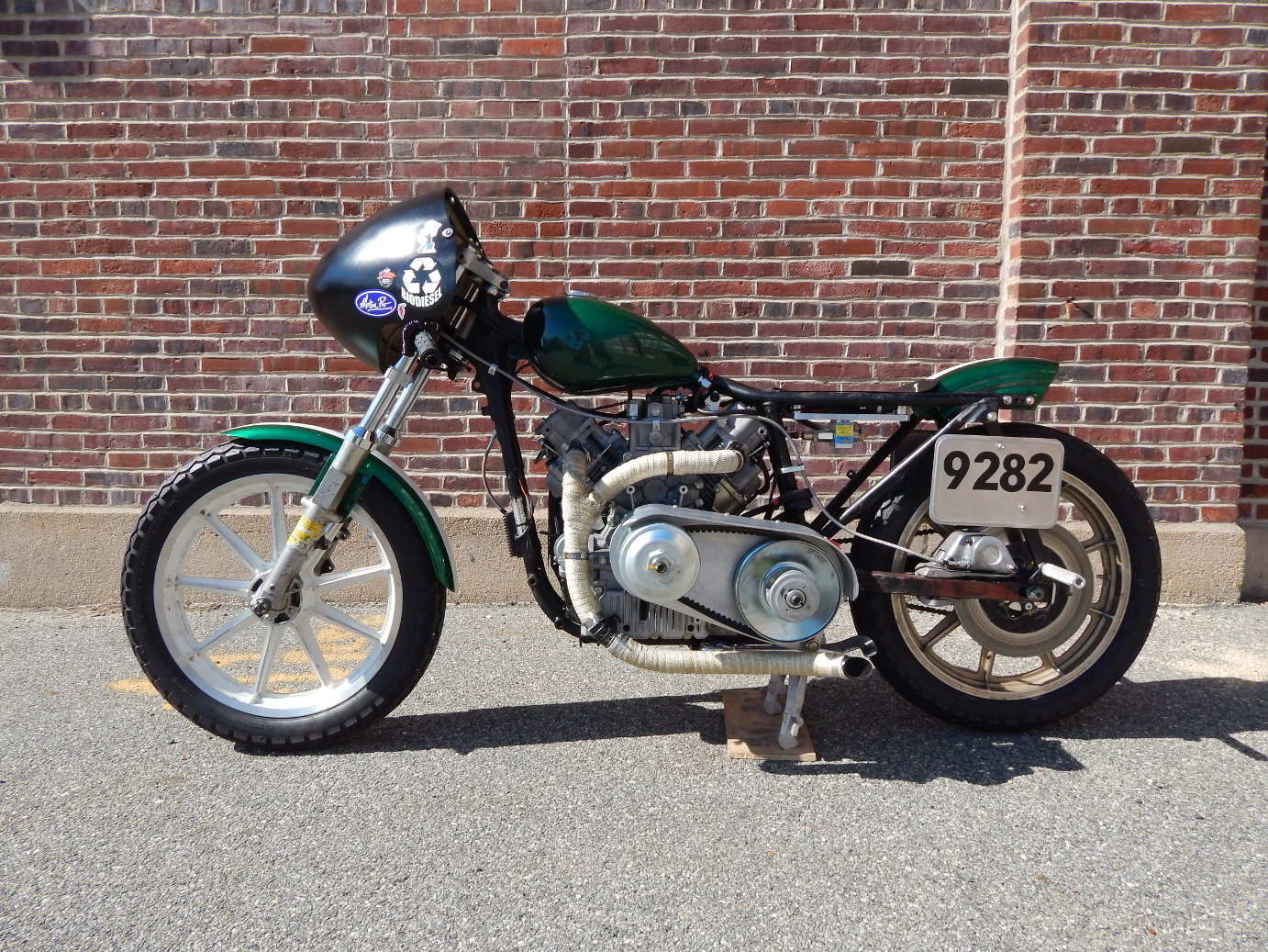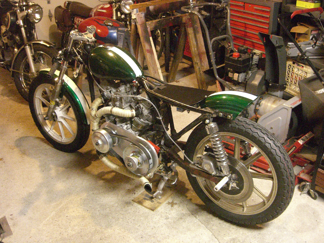 The donor was a heavily thrashed Suzuki dirtbike, and it was hilariously badly assembled by a high-school-age your truly, with zero build quality or safety features. Ultimately, the gas tank, foot pegs, nose cone, and some wiring were put into storage, and eventually recycled into the Biodiesel Sportster.