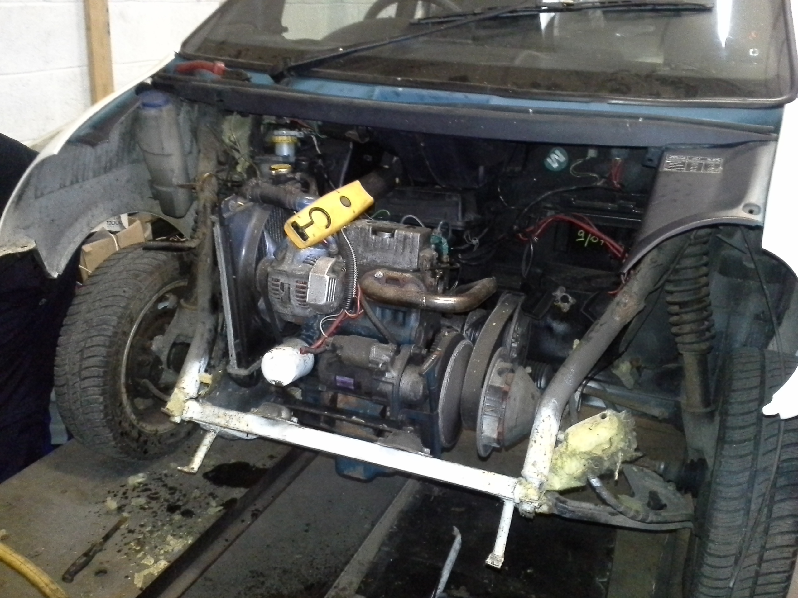 It's amazing what you can achieve in an hour. Plan B is underway. The engine cradle was chopped from the donor vehicle.