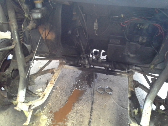 All is stagnated at chez Eddy's at the minute. Not much has happened with the build. The fuel tank has been gas welded but has a couple of pin hole leaks and still need to sort the fuel feed/return. I cannot do that until the engine is mounted to see what clearance I have. I have sourced another swinging arm from eBay to replace the single arm version that is currently on the bike (ha ha) but I am still looking for a compact CHEAP CVT unit. It may be possible to cut the rear engine mounts off the frame and reposition them to give me the necessary room to use the existing Aixam CVT.