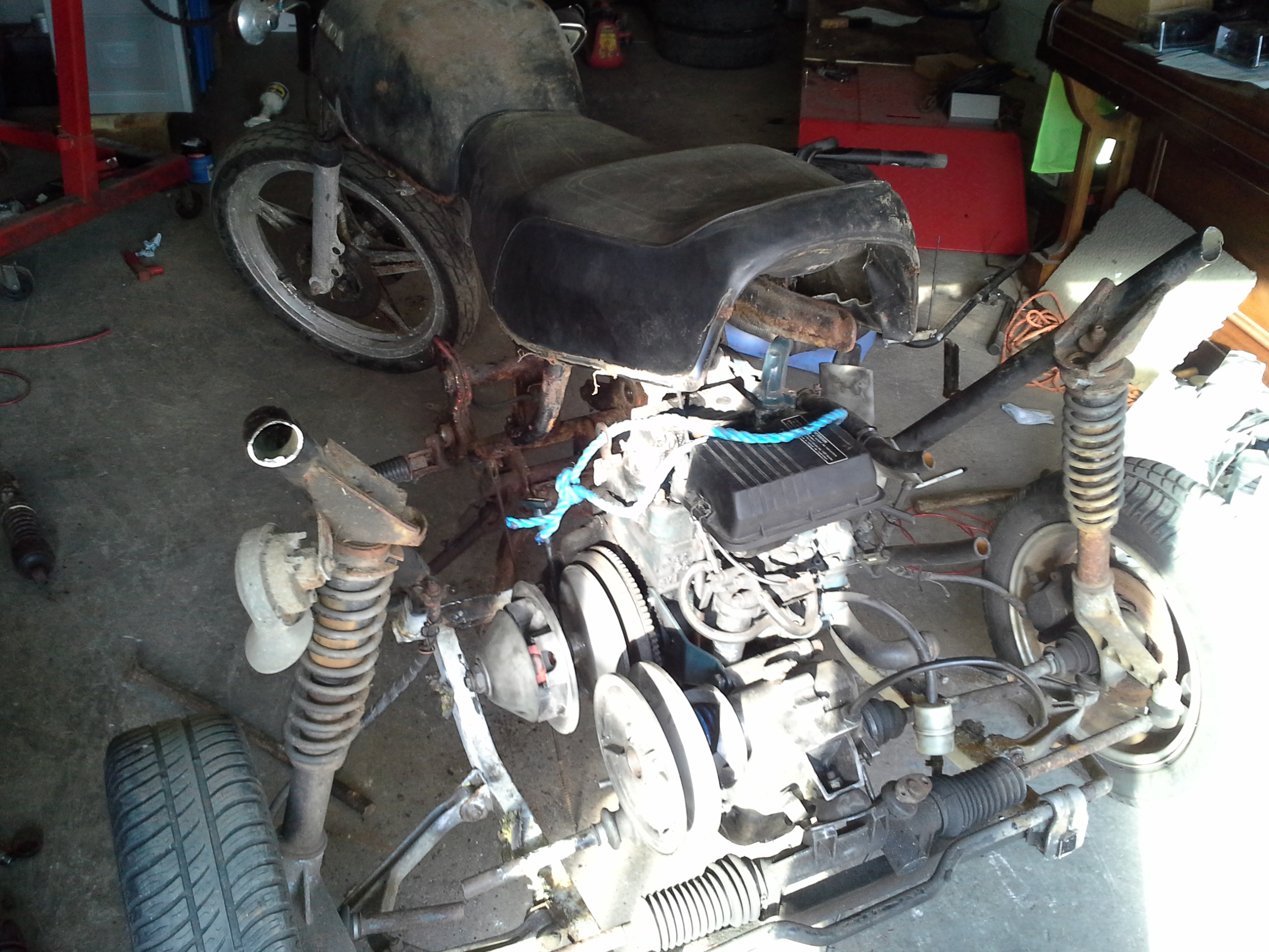 Shoot was hoping you were going reverse Trike. Anything from a Morgan-sh thing to one of Mad Geordie's crazy early creations. In fact use the Axiam you got the engine out of to create something like his Mini Cooper-ized reverse Trike. It is in the video below along with his airplane pictured below