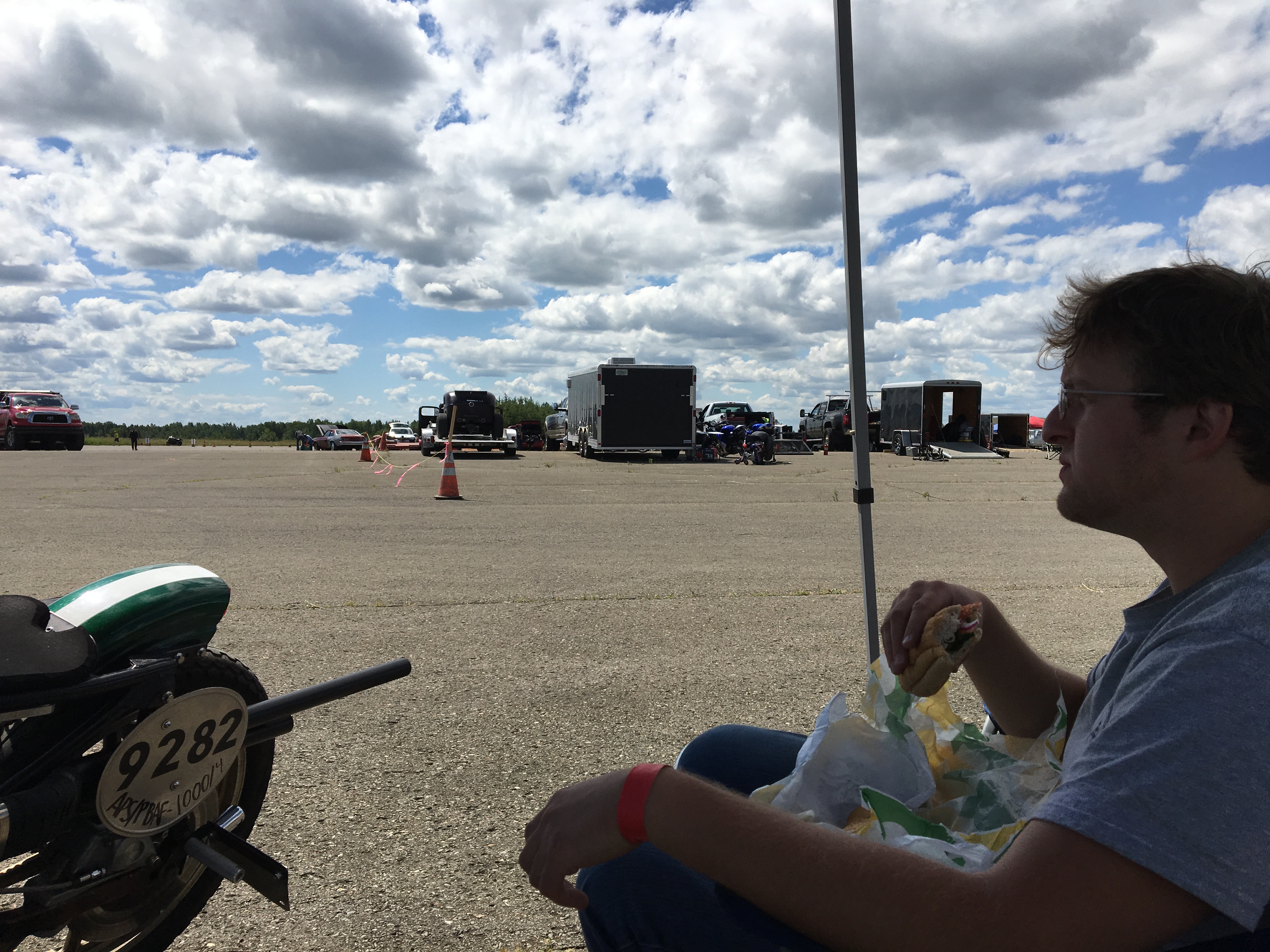 After the third run, we were confident that the bike was at maximum power, and any further runs would only risk causing engine damage. We packed everything up, loaded the truck, and watched other teams race the course before driving back to Presque Isle for dinner.