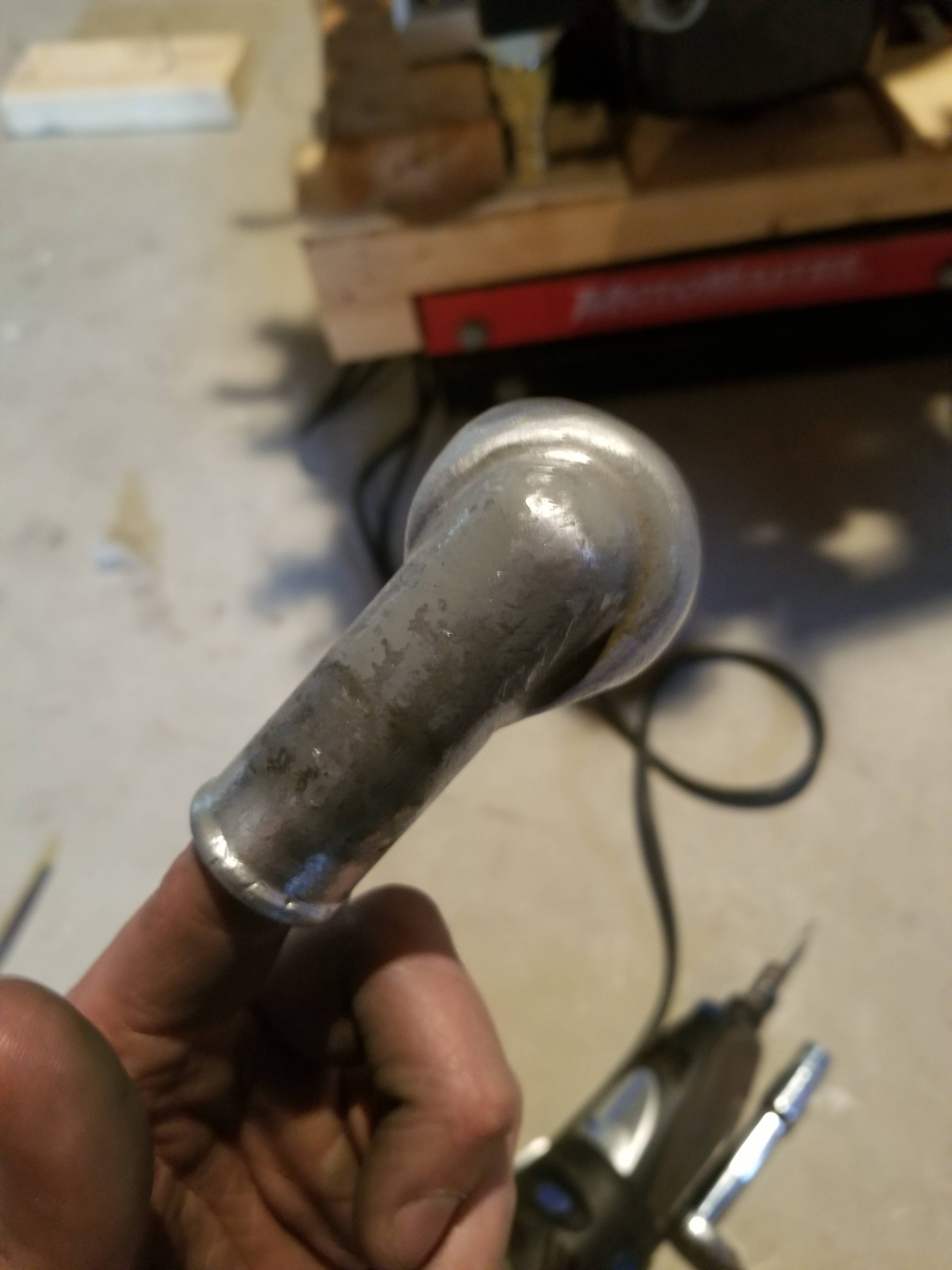Shortened housing with adapter ring for the modified elbow Modified elbow with mount holes removed. Together back on the bike.Just clears the bottom of the black frame plate for sliding engine forward.
