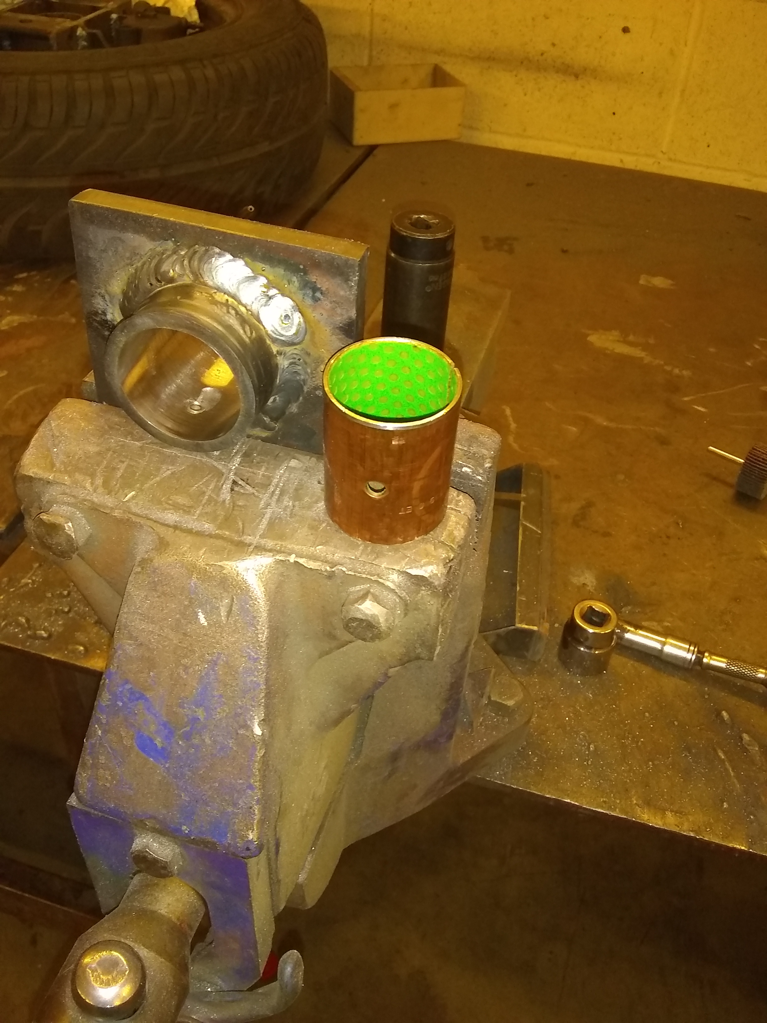 Well I had to go away for a bit but I am now back working on the bike. I spent a few hours working out things and drawing up the part I needed making. I found a couple of places that would help me out. Unfortunately when they gave me the price I nearly passed out. So it was time to find another solution. I hadn’t given it much thought as my son needed help with the electric guitar he has been building for his college project. We needed some screws so I had a rummage at the back of the garage. I never did find the screws for him but I did find a bag with a pair of rear wheel bearings in for my wife’s car. So I looked them up to see what the dimensions are. The inner was 25mm now I had a bit of bar that was either 1” or 25mm so I thought this may be a plan. Well the bar fits the outer diameter is 52mm this is not as easy I would need a piece of 60mm with a thick wall to have it machined up to fit. I was determined though to avoid having anything made up. So far I have made everything for the bike with a hammer and grinder the welder and a big pillar drill. I searched everywhere and I just couldn’t find anything. I had an old jack in the shed I had not even thought about harvesting something from that. Well I measured the first shaft and it was just over 50mm. I thought that the next would be about 51mm with the clearance for the seals so it was time to make a sacrifice. Well talk about a stroke of luck the bearings are just the right fit in the tube. So next it was time to sort the hub face. A nice bit of 12mm plate will do. I forgot what it was like to get through it with a holesaw but slow and steady with a bit off cutting fluid and it was good. Now a holesaw is not precise it never will be so I had to start with a few mm smaller than I wanted to end up with. Everything else had to be marked up first. But I got it sorted out. And with the help of a pair of welding magnets and the dial test indicator I was off. I managed to get it just under 0.006 of a inch on the face it was tricky but i used the welder to pull it um i couldnt get it better than 0.020 to start with. It is as close as i can get it so i think that will have to do. I still have a few things to get sorted which I will need some parts.