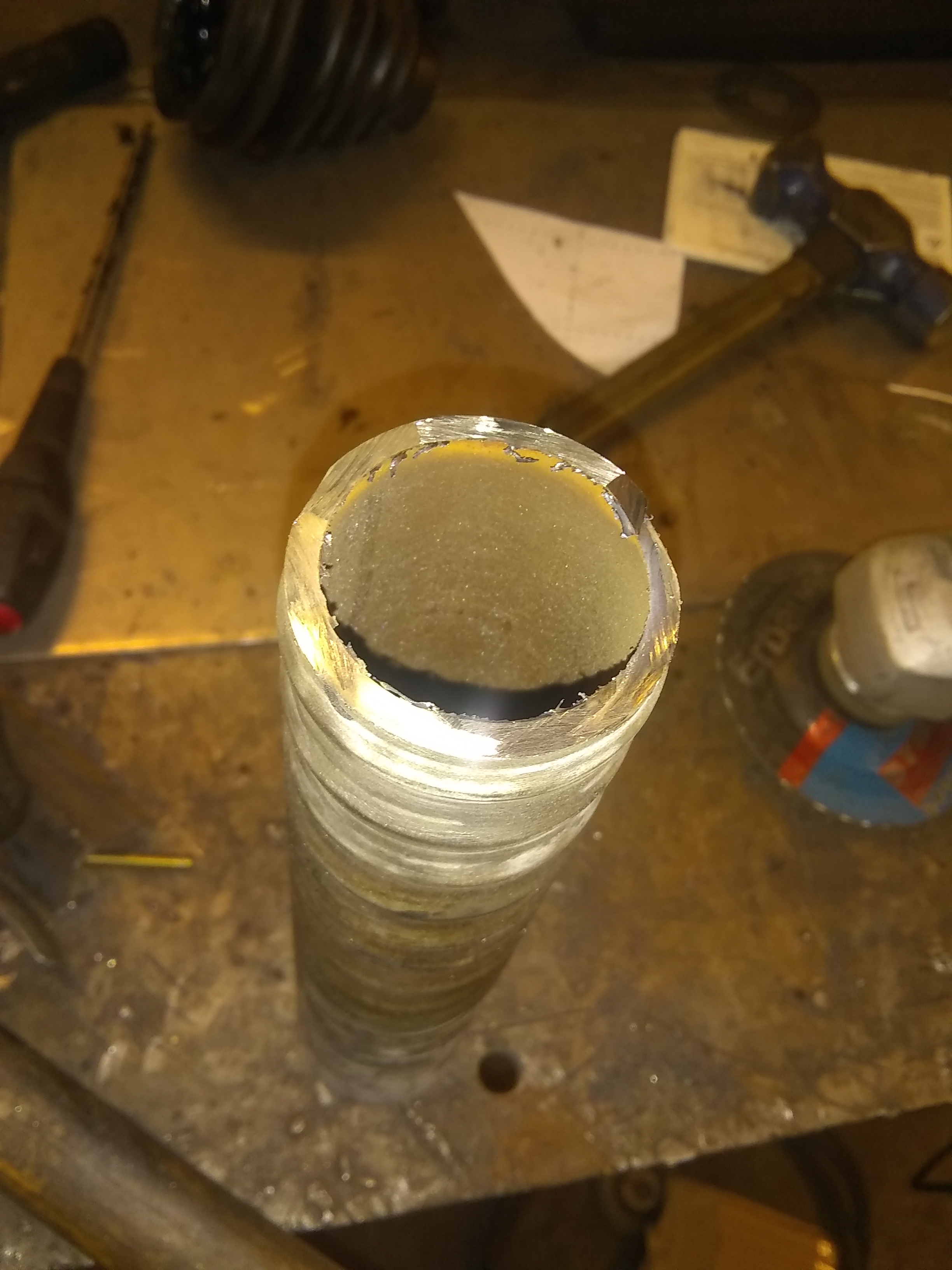 Well I had to go away for a bit but I am now back working on the bike. I spent a few hours working out things and drawing up the part I needed making. I found a couple of places that would help me out. Unfortunately when they gave me the price I nearly passed out. So it was time to find another solution. I hadn’t given it much thought as my son needed help with the electric guitar he has been building for his college project. We needed some screws so I had a rummage at the back of the garage. I never did find the screws for him but I did find a bag with a pair of rear wheel bearings in for my wife’s car. So I looked them up to see what the dimensions are. The inner was 25mm now I had a bit of bar that was either 1” or 25mm so I thought this may be a plan. Well the bar fits the outer diameter is 52mm this is not as easy I would need a piece of 60mm with a thick wall to have it machined up to fit. I was determined though to avoid having anything made up. So far I have made everything for the bike with a hammer and grinder the welder and a big pillar drill. I searched everywhere and I just couldn’t find anything. I had an old jack in the shed I had not even thought about harvesting something from that. Well I measured the first shaft and it was just over 50mm. I thought that the next would be about 51mm with the clearance for the seals so it was time to make a sacrifice. Well talk about a stroke of luck the bearings are just the right fit in the tube. So next it was time to sort the hub face. A nice bit of 12mm plate will do. I forgot what it was like to get through it with a holesaw but slow and steady with a bit off cutting fluid and it was good. Now a holesaw is not precise it never will be so I had to start with a few mm smaller than I wanted to end up with. Everything else had to be marked up first. But I got it sorted out. And with the help of a pair of welding magnets and the dial test indicator I was off. I managed to get it just under 0.006 of a inch on the face it was tricky but i used the welder to pull it um i couldnt get it better than 0.020 to start with. It is as close as i can get it so i think that will have to do. I still have a few things to get sorted which I will need some parts.
