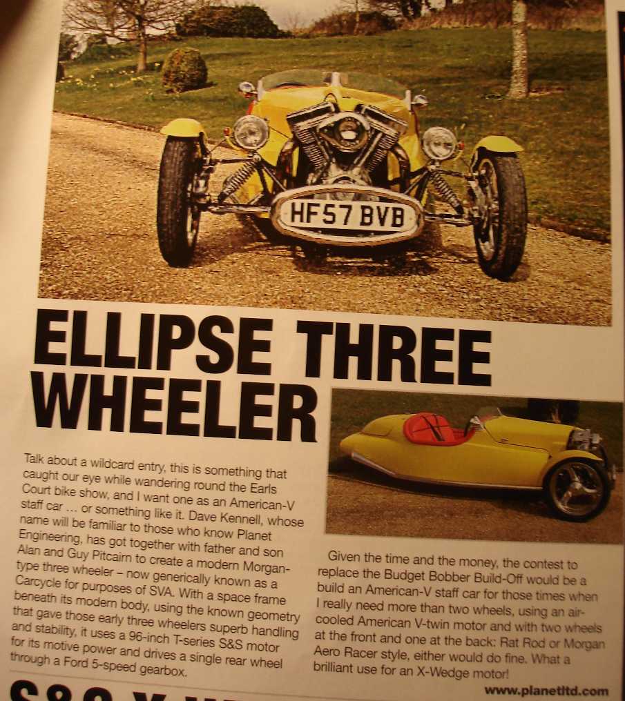 Well wouldn't you know it. They were handing out free 2 year old magazine's at Brightona event yesterday and what do I see in one :?: An S&S 96" T-Series bike engine in a Morgan like car :D