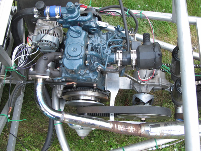 Hi there everybody, I have a real problem with my build...see it at http://www.roopod.com ...the reverse gearbox that I was trying to use has proven no match for the torque from the kubota z482 cc engine running through a comet 94c cvt. the gearbox, rated at 16 hp did not like the torque from the 13hp diesel, I am now not suprised when I compared the torque from the kubota 22ftpds to that of a gas engine, I had to go up to about 30-35 hp! no wonder...anyway, now I am temporarily putting in a solid jackshaft in place of the comet reverser (internal dog clutch done in) and going without reverse. but I am looking for any and all opinions on a gearbox, electric motor, chains, planatary gears etc , it is no fun to have to get out and push! just for clarity, the gearbox is 1-1 for foward and 3.something to 1 for reverse...help!!! thanks guys, and be sure to check out the site...there is lots of pics and videos etc, I have my headlights going now and am just taillight, indicators and fenders from being able to get inspected! Roo