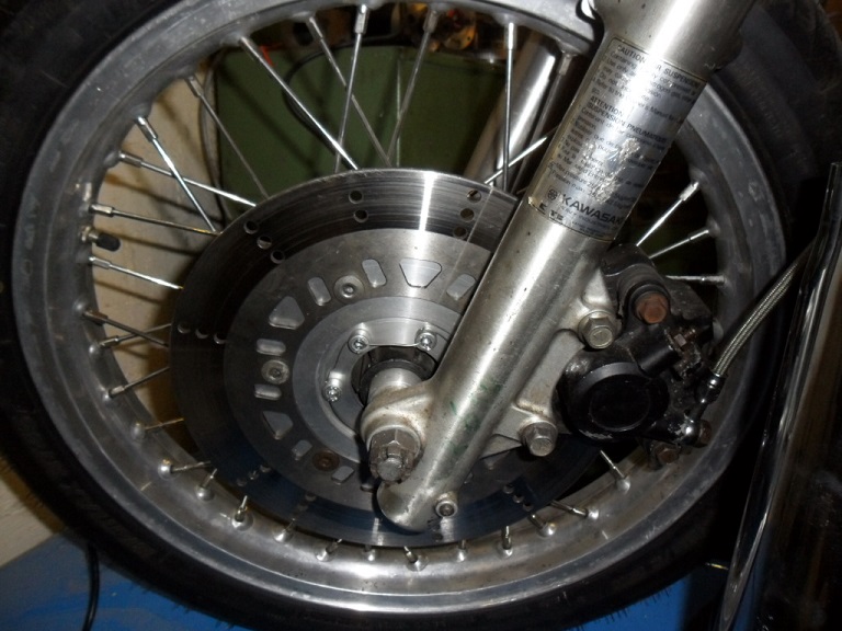 Caliper of this fork replaced the brembo, and the guzzi disk was changed for a gsx1100 disk which is now on the other side. Brakes well and linear. Pump's still brembo.