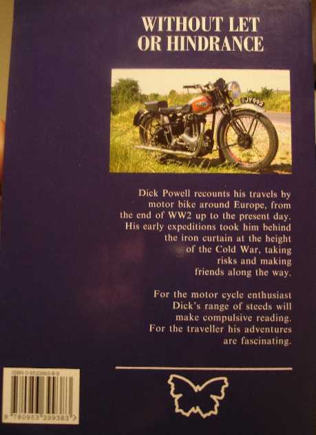 I'm hot on the trail of Dick Powells book, 'Without Let or Hindrance' as was recommended by Tom in Hamm. All about hell for leather solo european tours on old British bikes directly after WW2 when all the bridges were bombed out and stuff. No luck as yet :(