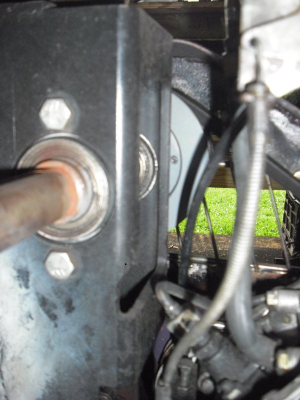 Here is the top shaft. You can see the drive pulley from the engine on the back.